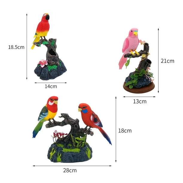 Ce perroquet parlant a une puce de détection sonore. Utilisation polyvalente : les perroquets vocaux de contrôle sont parfaits pour votre porte d'entrée, mur, salon, cuisine, magasin, jardin, cheminée, rebord de fenêtre, rampe d'escalier, fête de Pâques, arbre de Pâques, et n'importe où à l'intérieur ou à l'extérieur Description du produit Caractéristiques:Ce perroquet parlant a une micropuce de capteur de son. Le perroquet commencera à imiter votre discours une fois que vous aurez placé les pieds du jouet perroquet électronique sur la branche, inséré 2 piles AA dans la base et actionné l'interrupteur. Ils sont parfaits pour votre porte d'entrée, mur, salon, cuisine, magasin, jardin, cheminée, rebord de fenêtre, rampe d'escalier, fête de Pâques, 【Pour la plupart des occasions】 Contrôlez les perroquets vocaux pour décorer une atmosphère festive dans votre maison. Installez les pieds du jouet perroquet électronique sur la branche, placez 3 piles AA sur la base, allumez l'interrupteur et le perroquet commencera à imiter ce que vous dites. Oiseaux robot, jouets électroniques pour oiseaux chantants et chirping, oiseaux chantants alimentés par batterie, pour la décoration de la maison, commande vocale d'éclairage 【Perroquet parlant】Lorsque le perroquet parle, sa tête et son corps se balancent, tout comme un vrai perroquet perché sur une branche. Lorsque le perroquet parle, sa tête et son corps bougent, tout comme un vrai perroquet perché sur une branche. cette statue est peinte à la main, et la texture moulée unique et les détails riches donnent vie à ce perroquet. Baby Dolls - Simulation mignonne Baby Dolls Jouets créatifs pour bébés... Perroquet Artificiel Faux Oiseaux Artificiels En Mousse, 6 Pièces, Simulation D'animaux, Modèles D'oiseaux En Plumes, Bricolage, Mariage, Maison, Jardin, Ornement, Décoration D'arbre Mousse Decorative Artificielle 【Conception de perroquet inégalée】 L'adorable forme de perroquet de la figurine Parrot vous permet de jouer.