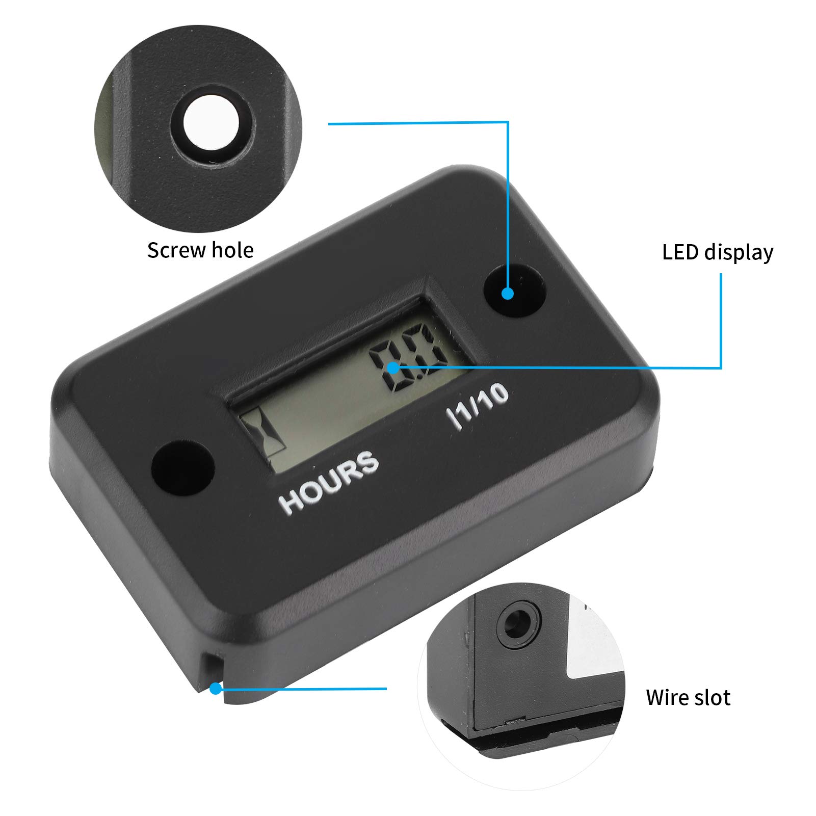 [Conception et fiable] époxy encapsulé pour une résistance à l'eau, aux chocs et aux hautes températures. [Installation et lisibilité faciles] Grand écran LCD pour une lecture facile à tout moment, processus d'installation simple pour une utilisation sans tracas. [Enregistrement précis et pratique] Enregistre et affiche jusqu'à 9 999,9 heures avec un calibrage minimum de 0,1 heure pour un suivi précis. Tachymètre De Compteur Horaire Numérique, Rappel De Maintenance Batterie Remplacable Arret Automatique Utilisation Pour Tondeuse A Gazon Ztr Generateur De Tracteur Marine Vtt Motoneige Et Equipemen 73229814 Large compatibilité : le compteur horaire numérique LCD est conçu pour être adapté à tout moteur à essence et générateur, y compris les véhicules marins, VTT, motos et autres variantes Étanche IP65, il résiste aux vibrations, aux lavages haute pression et aux températures extrêmes (-40°C à 70°C). Parfait pour les ATV, UTV, motos, hors-bords... Dilwe Compteur d'heures moteur Compteur Horaire du Moteur Jauge d