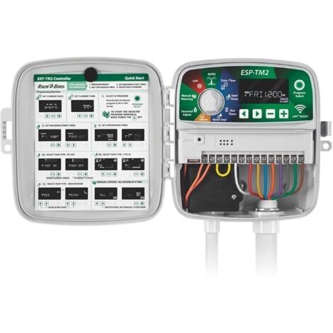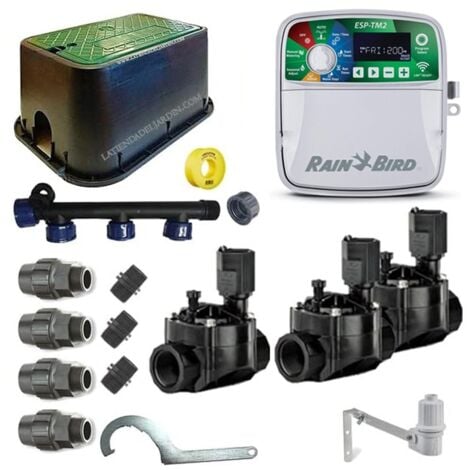com et nous vous aiderons ! Rain Bird Programmateur Suinga Électrovanne D'arrosage 100-HV Rain Bird 1 9 V Pour Programmateurs à Piles + 2 Connecteurs étanches Pour Isoler Les Connexions Programmateur Arrosage Rain Bird Suinga - Pack d'arrosage automatique Rain Bird - Hunter Irrigation 24 V, 6 zones d'irrigation pour tuyau 25 mm ✔️ Ensemble d'arrosage automatique pour irrigation goutte à goutte comprenant le matériau suivant : programmateur WPX6 Rain Bird, 6 électrovannes 100DVF avec régulateur de débit 9 V, téflon 12 mètres 12 mm, capteur pluie Rain Bird RSDBex, 7 raccords filetage mâle 32 mm PE, 1 clé de serrage fitting de 20 à 32 mm, 1 mm, 1 mm, 1 mm, mm, 1 arre., quet. Le système d'arrosage automatique nous permet d'automatiser facilement et facilement l'arrosage de votre jardin. Ensemble d'arrosage automatique pour irrigation qui comprend le matériel suivant : programmateur Hunter Eco Logic 6 zones intérieures, 6 électrovannes 100 HV 1 24 V, téflon 12 mètres 12 mm, 7 liens filetage femelle 25 mm PE, collecteur pour 6 zones d'arrosage, capteur de pluie et boîte de 65 x 53 x 30 cm avec clé ✔️ Ce kit permet le raccordement direct avec un tube en polyéthylène de 32 mm. ✔️ Kit d'arrosage automatique Rain Bird pour 6 zones d'arrosage. Complet Tuyaux Raccords Programmateur Irrigation Suinga Avis Kit Collecteur D'arrosage électrovanne Rain Arrosage Automatique
