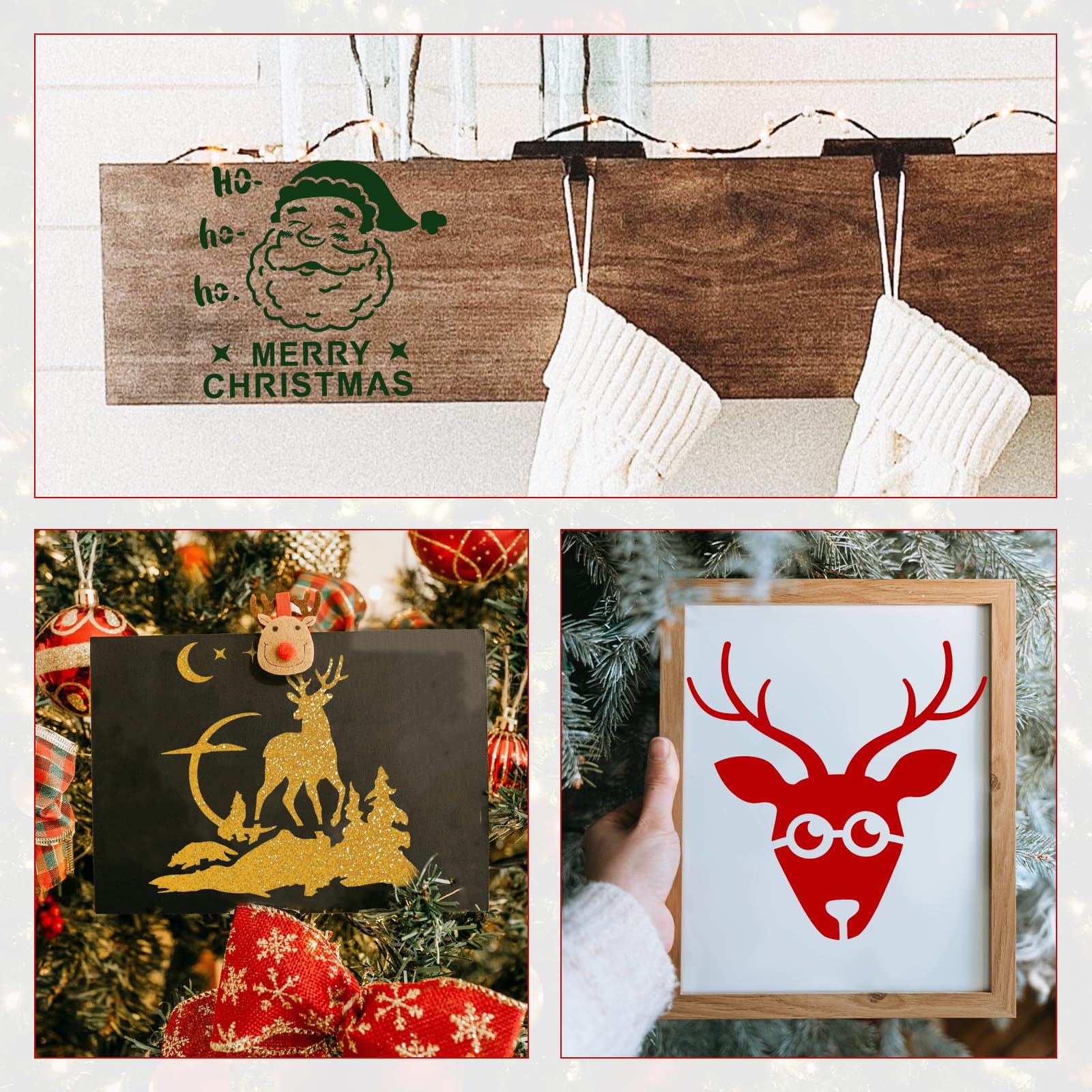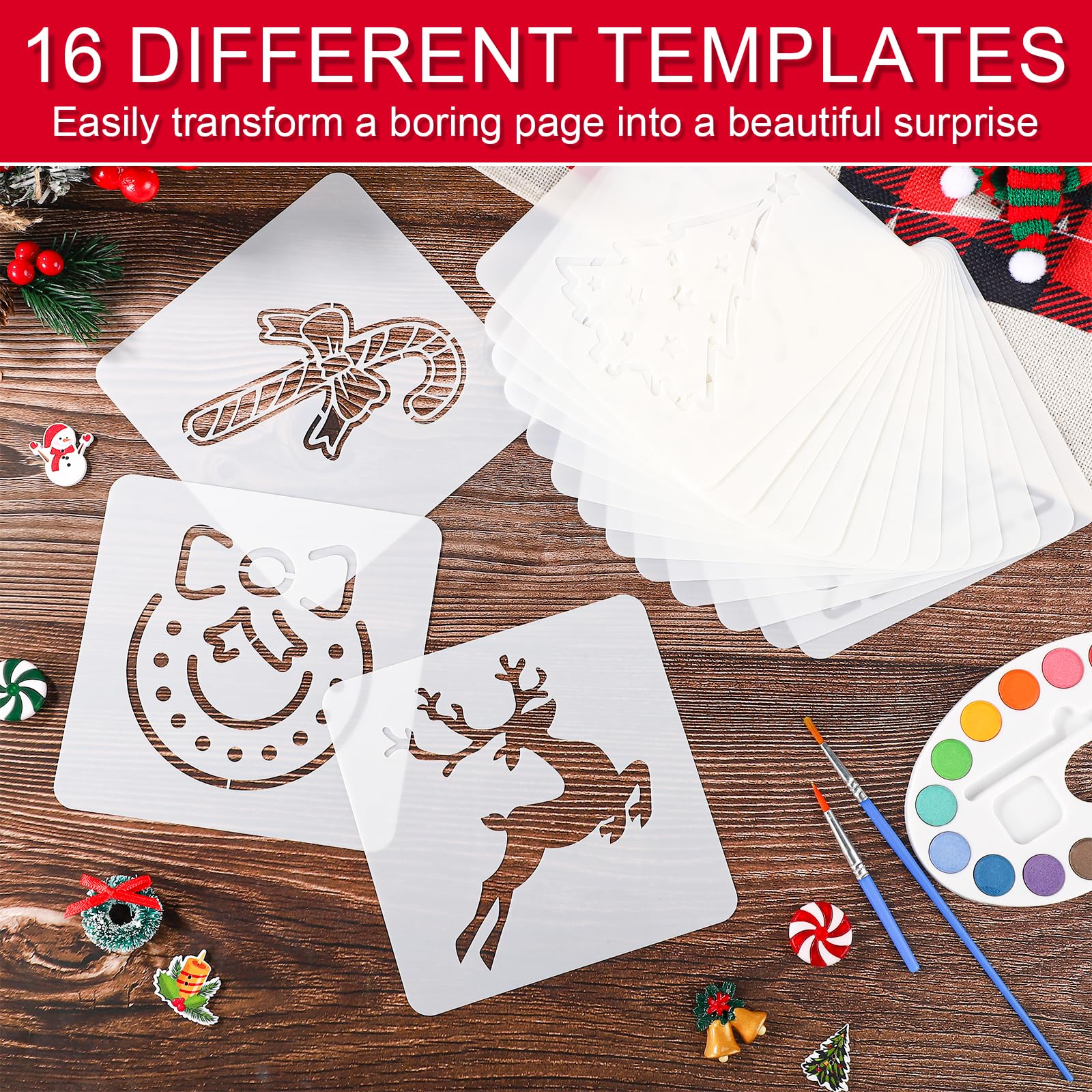 Spécification: Couleur: blanc Matériau: matériau PET Taille du produit: 13x13cm Détails du colis: 16 x pochoirs de Noël Remarque: En raison de la mesure manuelle, la taille et le poids peuvent présenter une certaine erreur. 16 pochoirs de Noël différents]: 16 pochoirs de peinture, chacun avec un motif différent, ces pochoirs contiennent presque tous les thèmes de Noël populaires tels que les arbres de Noël, le père Noël, les coffrets cadeaux, les flocons de neige, les élans et plus encore Contenu du produit: vous recevrez 16 pièces de pochoirs de Noël, réutilisables, durables et avec beaucoup de motifs à choisir. Taille du produit: La taille des pochoirs de Noël est de 13x13cm, pas trop grande, vous n'avez donc pas à vous soucier qu'un seul pochoir occupe tout l'espace de vos peintures. Ils transformeront les pages ennuyées en belles peintures. Déco Fenêtre Cartes De Vœux 16pcs Pochoirs De Noël Pour L'Artisanat, Pochoirs De Noël Réutilisables Décorations Noël Artisanat Ils sont suffisants pour répondre à vos besoins de peinture. Cette conception vous permet de dessiner plus de motifs sur vos ouvres. Artisanat de Noël: Avec des éléments de Noël classiques comme Snowman et le Père Noël dans nos pochoirs, vous pouvez utiliser nos pochoirs de Noël pour créer de beaux paysages de Noël. La surface lisse garantit une prise en main confortable lorsque vous peignez. Pochoir de dessin joyeux noël, modèles de gauage de carte en La conception des coins arrondis les rend également plus sûrs, ce qui ne vous rayera pas la main. Ce que vous obtenez : les pochoirs de Noël pour la fabrication de cartes comprennent 16 pièces, 11 pochoirs « Merry Christmas » mesurant 10,2 x 7,6 cm et 5 peintures sur bois de 10,2 x 5,1 cm