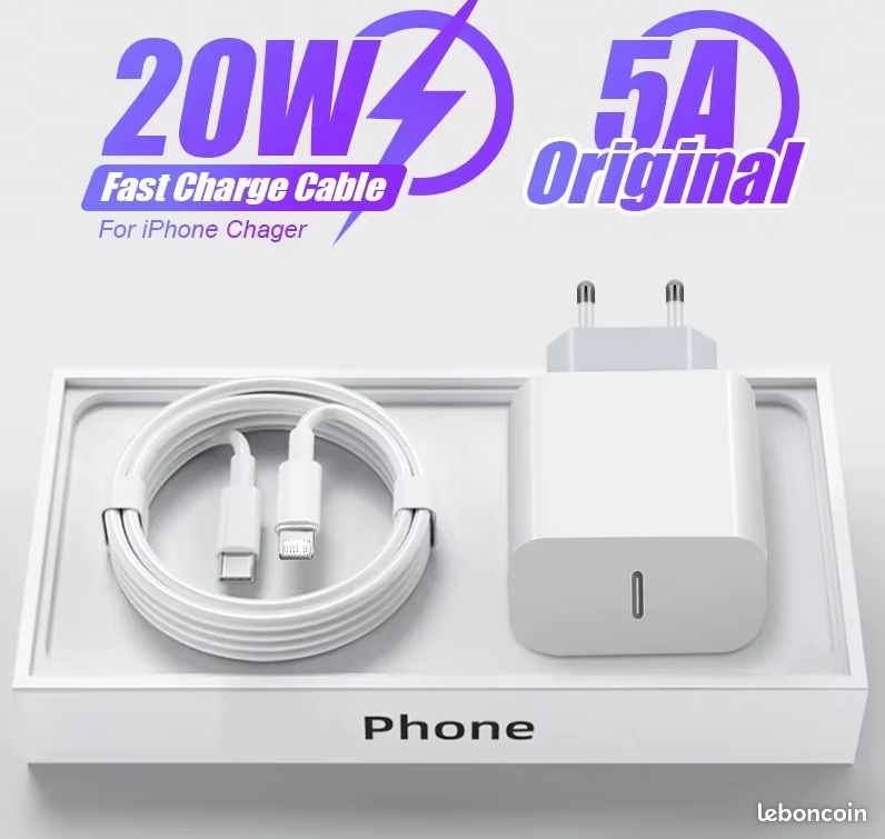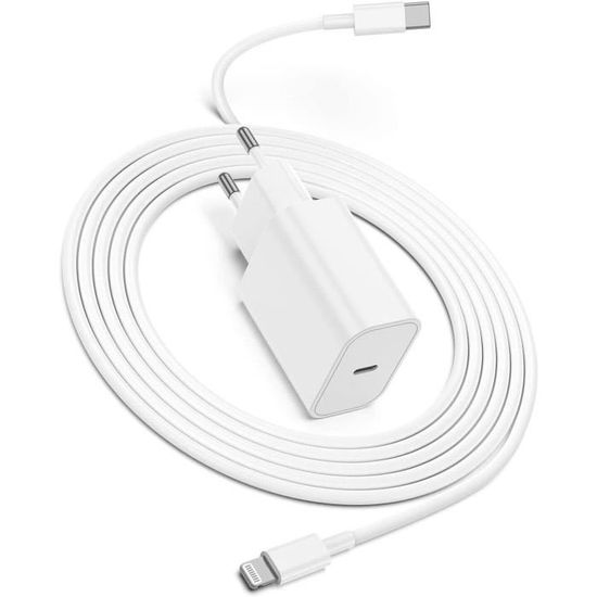 prise USB largement applicable à tous les appareils équipés d'un connecteur Lightning. L'adaptateur de prise compact rapide pour chargeur USB C facilite la mise dans votre poche/sac à main/sac à dos,un accessoire de voyage parfait et pratique pour les voyages,la maison,le bureau,les vacances Description du produit Chargeur Rapide iPhone 20W USB C pour iPhone Chargement rapide avec 1 x 1M USB to lightning et 1M USB C iPhone Charger Cable Notre Lemsen chargeur iPhone intègre une puce USB Power Delivery 3., 0 avancée et délivre jusqu'à 20W de puissance de sortie pour charger vos appareils le plus rapidement possible tout en restant en sécurité. Conception de Charge 2 en 1:Embout chargeur iPhone dispose d'un port USB C et d'un port USB, équipé d'un câble USB C Lightning et d'un câble USB Lightning. Conception sûre et Fiable:Chargeur iPhone rapide est équipé de plusieurs mécanismes de protection pour assurer une protection contre la surcharge, la surchauffe et les courts-circuits. Conception Pratique du Câble Charge Rapide:Chaque cable iPhone charge rapide est doté d'une puce MFI intégrée, dont le fonctionnement est garanti comme celui de l'original. Le cable iPhone USB C est fabriqué en TPE de haute qualité, qui améliore la résistance à l'abrasion et aux dommages, vous offrant une expérience de chargement plus sûre et plus fiable. Compatibilité universelle]: Prise de charge USB C 20 W compatible avec iPhone 14/14 Plus/14 Pro/14 Pro Max/13/13Pro/13ProMax/13Mini/12/12Pro/12ProMax/12Mini... Chargement sûr et Rapide La fonction de charge intelligente de la prise du chargeur iPhone rapide empêche les problèmes de surtension, de surintensité et de surchauffe de l'appareil. Chargeur Voiture Iphone Et Câbles, Prise Allume Cigare Usb C Rapide 38W Chargeur Rapide USB-C IPhone Chargeur IPhone, 20W Chargeur Rapide I-Phone PD&QC Prise USB Prise Usb C Chargement Rapide et Efficace:Ce chargeur rapide iPhone double port 20W pour iPhone prend en charge la fonction de charge rapide de l'iPhone 14/13 et de nombreux autres téléphones portables Apple, chargeur USB peut charger l'iPhone 14/13/12/11 jusqu'à 50 % de sa puissance en 30 minutes, ce qui vous permet d'économiser du temps de charge. Le chargeur iPhone 13 est conçu et fabriqué avec du TPE ignifuge, du PVC pour une tension stable et des performances accrues. Deux Câbles Lightning Le cable USB C charge rapide est conçu et fabriqué avec des fils de cuivre de haute qualité, avec une tension stable, s'adaptant automatiquement au courant requis par l'appareil, et chaque cable USB C vers lightning est certifié MFI pour garantir qu'il n'y aura pas d'alertes d'erreur. Le embout chargeur iPhone sont légers et compacts. Compatibilité Universelle:Ce chargeur iPhone est compatible avec une large gamme d'appareils Apple, tels que 14/14 Plus/14 Pro/14 Pro Max 13/13 mini/13 pro/13 Pro max/12/12 Mini/12 Pro/12 Pro/12 Max/11/11 Pro/11 Pro Max/XS Max/SE 2022/2020, Pad Pro, etc.
