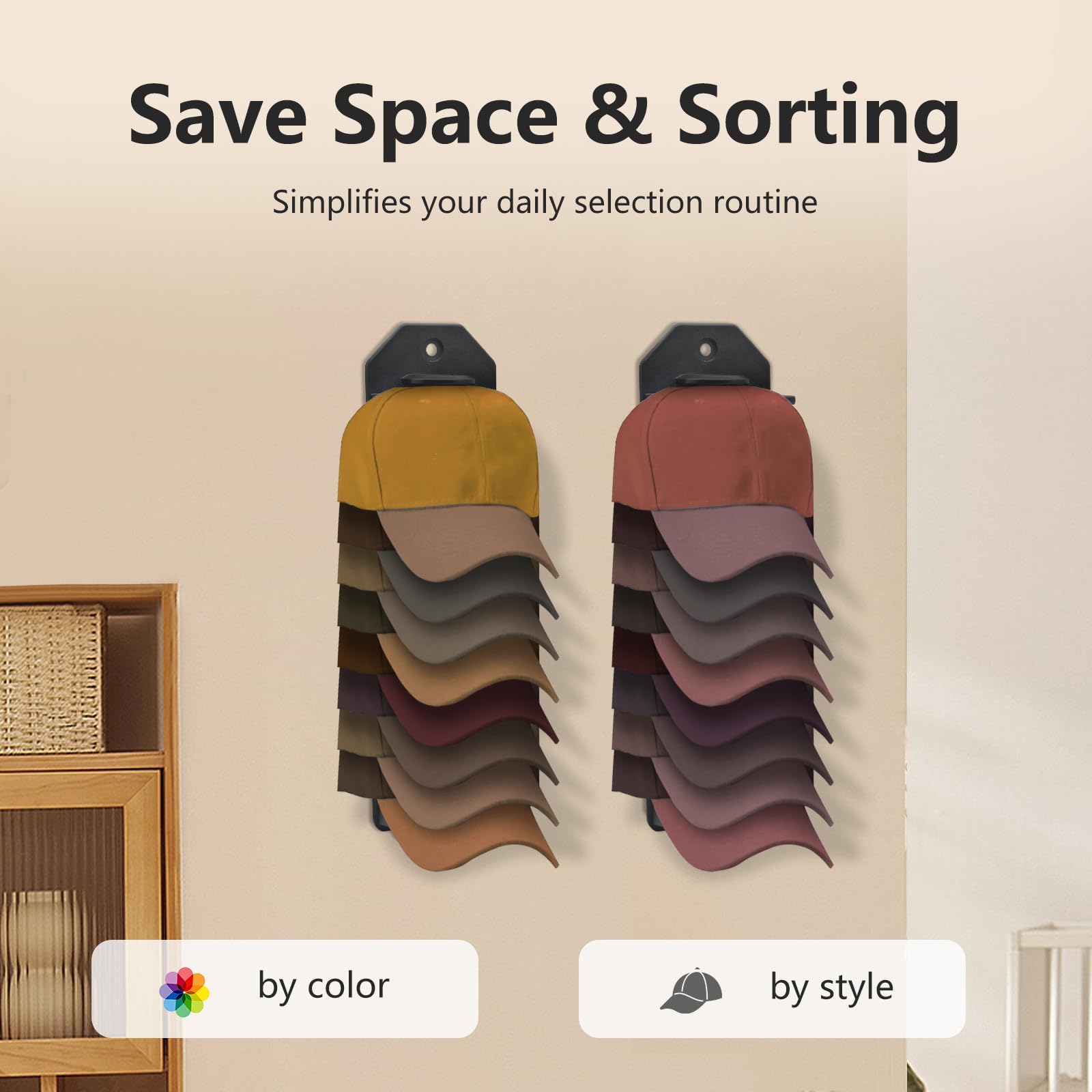 Maintenir la forme du chapeau : cet organisateur de chapeau mural est fabriqué en plastique de haute qualité, vous n'avez pas à vous soucier de la rouille ou de la corrosion. Gain de place pour le placard : ce porte-chapeau de baseball compact dispose d'une méthode de suspension unique qui permet d'économiser de l'espace dans votre maison, de garder votre maison bien rangée tout en présentant la variété de vos porte-chapeaux de baseball, vous permettant de choisir facilement le chapeau dont vous avez besoin en fonction de ce que vous portez. Facile à installer : pour les surfaces lisses, il suffit de décoller l'autocollant à l'arrière du support et de le presser autant que possible sur une surface lisse et propre, sans bulles d'air, attendez 24 heures, puis accrochez les casquettes de baseball. TAPT Porte Casquette, 2 Pièces Support Casquette Mural Support pour Casquette de Baseball en Bambou, Range Casquette pour le Stockage Chapeaux, Echarpes(avec des vis Simple et respirant : le porte-chapeaux est conçu dans un modernisme à la mode et constitue un complément parfait à votre décoration intérieure. Achetez Organiseur de chapeaux pour casquettes de baseball, support mural avec adhésif puissant pouvant contenir jusqu'à 10 chapeaux, organisateur de chapeaux pour porte, organisateur de casquettes (Noir Organisateur Casquette BOXOB Lot De 2 Porte-chapeaux Muraux En Plastique Pour Casquettes De Baseball, Crochets Adhésifs Pour Casquettes De Baseball, Organisateur De Casquettes De Baseball, Support De Rangement Pour Porte Chapeau Mural Support Mural Casquettes Porte casquettes En Métal - Temu France