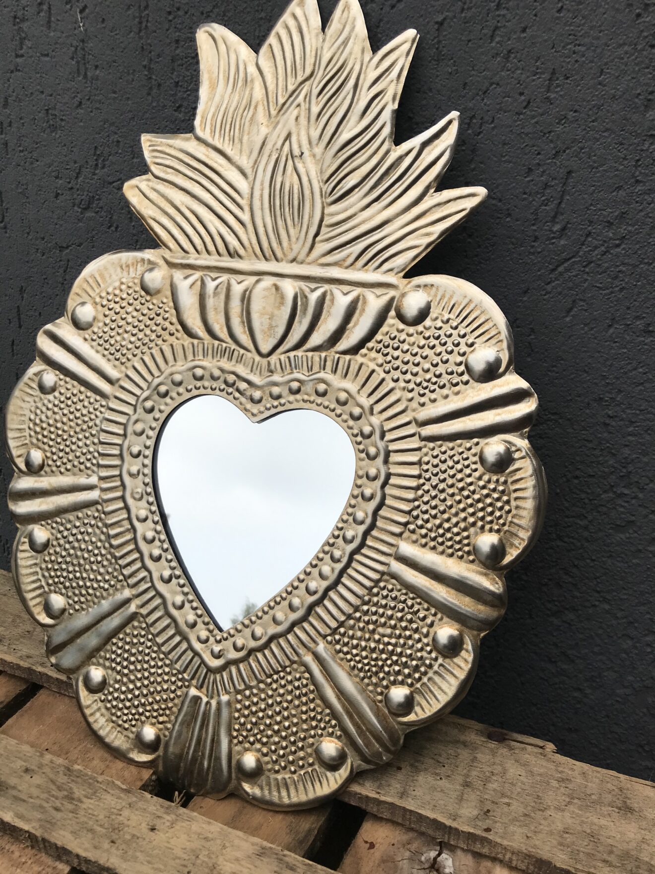 Suspension cœur ex-voto rouge et violet Pondie Chérie - Le petit Souk Grand Miroir Ex-voto en Résine Dorée Les feuilles d'étain utilisées ont une épaisseur comprise entre 0,1 et 0,15 mm, ce qui permet de les façonner à la main. Parmi notre sélection décoration murale, les ex-votos occupent une place toute particulière. Ils se déclinent sous forme de cœur, de miroir, d’oiseau ou encore de végétaux Décoration Murale Croix Miroir Ex-Voto Séraphin - Catho Rétro Croix Ex Voto Mexique Aucune utilisation de machines n'intervient, une épaisseur supérieure rendrait leur manipulation impossible., métal