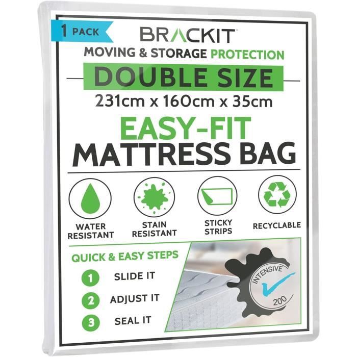 Nos housses de matelas résistantes en plastique sont conçues pour une utilisation à long terme - le choix le plus intelligent et le plus écologique. Nos housses de matelas sont dotées de poignées robustes pour une bonne prise en main, d'une fermeture à glissière facile à utiliser pour une fermeture et un accès rapides, et de sangles à boucle réglables pour maintenir la housse en place et réduire le bruit du vent pendant le transport Housse de matelas pour déménagement et rangement, sac de matelas imperméable avec 8 poignées de transport renforcées, housse de protection extra épaisse, Heavy Duty (196 x 145 x 38 HOUSSE PROTECTION MATELAS KING SIZE Grâce à leur durabilité de premier ordre, qui résiste à plusieurs déménagements ou cycles de stockage, vous économisez de l'argent tout en réduisant les déchets , TRANSPORTER., RANGER . Housse de matelas 2 places pour votre déménagement MAINTENIR AU SEC : notre housse de matelas est hydrofuge et protège contre les déversements et l'humidité. (Remarque : pour des résultats optimaux, protéger de l'humidité prolongée, car les fermetures à glissière ne sont pas entièrement étanches) Housse Matelas Reine YZK Sacs Pour Matelas Pour Le Déménagement Et Le Rangement Cali King Protège Matelas 140x190 RÉUTILISABLE & ECOLOGIQUE : Renoncez aux housses de protection jetables ! 1 POIGNÉES FORTES 2 FENTE EN FORME DE U 3 RÉSISTANT À LA DÉCHIRURE 4 PROTECTION COMPLÈTE FORTES POIGNÉES DE MOUVEMENT : Déplacer votre matelas est désormais encore plus facile !