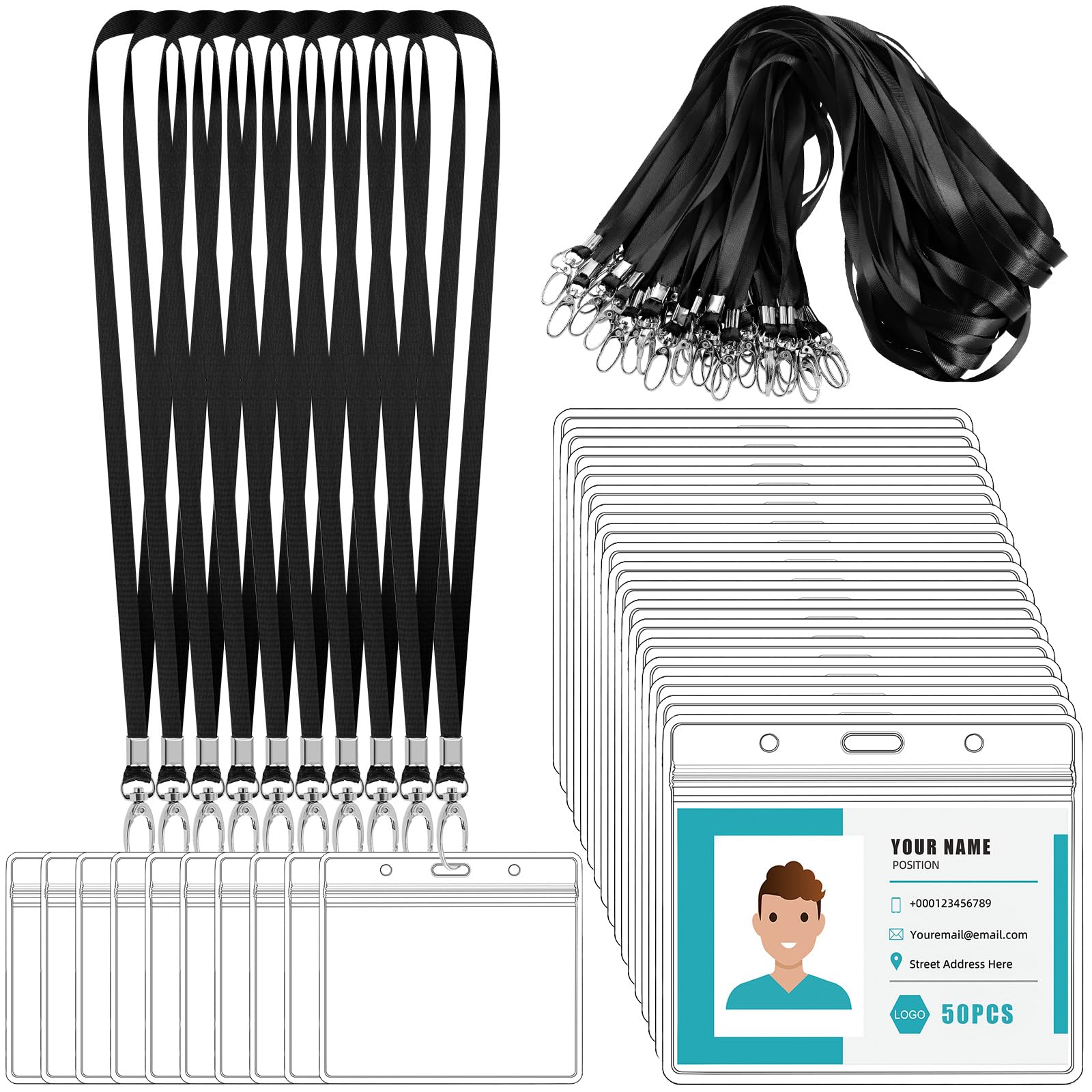 Le crochet pivote à 360° pour une utilisation fluide et sans torsion. Lot de 51 Portes Badges Horizontaux 10x6cm avec Cordon Tour de Cou 45cm, PVC ... Résistant - Étanche, Bleu - pour Professionnel, Étudiant, Exposition, Accès 【Fermeture à glissière réutilisable】 Ce porte-badge horizontal est équipé d'une fermeture à glissière robuste, permettant une ouverture et fermeture répétées sans faiblir. Avec 3 œillets renforcés, il est compatible avec les cordons, pinces et autres accessoires. Le PVC épais et le cordon résistant assurent une durabilité à long terme. Parfait pour protéger les cartes d'accès, badges ou cartes de visite contre l'usure et les intempéries. 【Dimensions optimisées et polyvalentes】 Ce porte-carte mesure 10 x 6 cm et peut accueillir des inserts jusqu'à 9,8 x 5,8 cm. Porte Carte Bus Porte Badge Tour De Cou Vordas - Lot De 20, PVC Étanche, Lanière 44cm Badge ID étanche 【Mousqueton lobster métallique robuste】 Ce cordon badge est doté d'un mousqueton lobster en alliage de qualité, résistant à la corrosion et facile à attacher/détacher. Idéal pour les cartes d'identité, badges professionnels ou cartes de transport, il assure une protection durable et un accès rapide. Parfait pour les cartes de crédit, cartes d'identité, badges d'entreprise ou cartes de transport en commun. 20 pinces pour mousquetons à cordon avec porte-badges et longesPorte... Badge D'identification Professionnel HFJKFW-Lot De 2 Porte-badges Horizontaux Avec Cordon Tour De Cou Pour Portes Badges Horizontaux Lot 51 Le cordon de 45 cm s'ajuste confortablement autour du cou ou s'accroche à un sac.