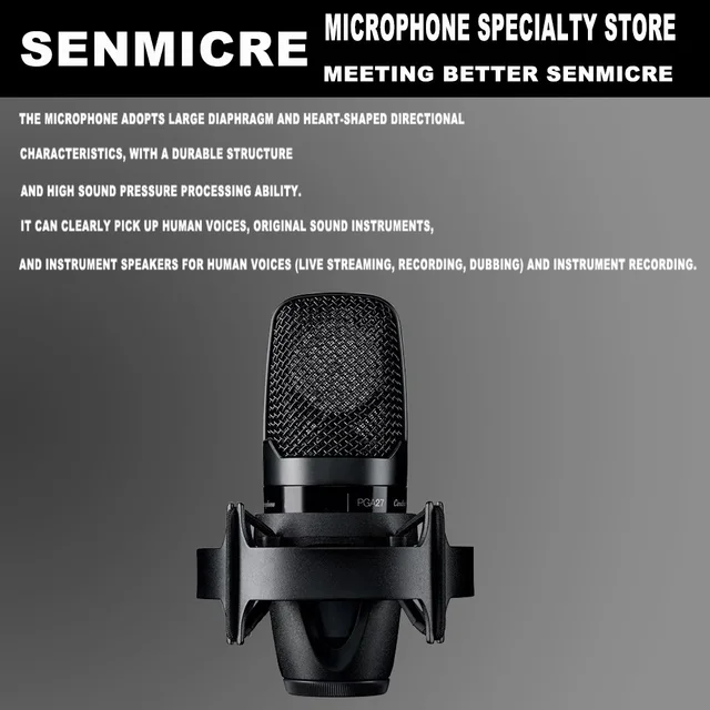 De conception robuste, il est utilisable aussi bien en studio que sur scène. Il est livré avec suspension, raccord multipas et malette de transport... voir plus Grande polyvalence pour l’enregistrement comme le spectacle live. Shure Pga27 Microphone SENNHEISER MK4 - Micro à Condensateur Large Diaphragme, Cardioïde Micro Condensateur Cardioïde Large Membrane Avec la famille de microphones PG ALTA, Shure respecte sa tradition de fabricant de produits audio de la plus haute qualité et de la meilleure construction possible. La capsule à grande membrane offre une plus large plage dynamique pour des aigus clairs et des graves puissants Look industriel amélioré, finition et grille noires métallisées, assurant une grande discrétion visuelle La capsule à grande membrane offre une plus large plage dynamique pour des aigus clairs et des graves puissants; Le diagramme polaire cardioïde capte le son... Microphone dynamique pour la voix SM7B Conçu avec une réponse en fréquence sur mesure pour une reproduction de qualité supérieure, le microphone à condensateur à incidence latérale PGA27-LC se caractérise par un large diaphragme cardioïde, une conception et une construction très durables et un niveau maximal admissible élevé permettant de capter avec clarté une grande diversité de sources sonores, vocales, acoustiques et amplifiées. Nécessite une alimentation fantôme., Livré sans cble. Mettant en avant un look industriel noir métallisé élégant et un diagramme polaire cardioïde réduisant le larsen et le bruit de fond, la famille PG ALTA offre un son sans faille et une fiabilité à toute épreuve qui établit une nouvelle norme en matière d’accessibilité et de professionnalisme pour la scène et l'enregistrement.