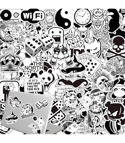 Autocollant 220 Pièces, Autocollant Noir Blanc,vinyle étanche Graffiti Autocollant Pour Ordinateur Portable Bagages Skateboard, Voiture, Vélo, Ordinateur, Enfants