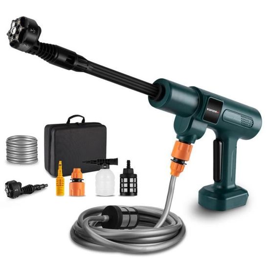 Nettoyeur Haute Pression sans Fil Max 90 Bar avec Buse Multi-pulvérisation 6 en 1, Tuyau de 5M, Lance D'extension, Outil de Nettoyage de Voiture en Plein Air pour Animaux de Compagnie et Jardin Léger et Portable]Le nettoyeur haute pression sans fil n'a pas de câbles, vous pouvez nettoyer à tout moment et en tout lieu. Installation rapide et retrait facile du tube pour une manipulation et un stockage faciles Cela ne signifie pas que le produit a été utilisé. Le nettoyeur haute pression est également équipé de 0°, 40° et d'une variété de buses qui peuvent être utilisées en combinaison pour nettoyer, irriguer, arroser les fleurs et d'autres tâches efficacement Ce pistolet à eau haute pression est équipé d'un interrupteur de sécurité qu'il faut appuyer avant de commencer pour éviter que les enfants ne l'activent accidentellement Nettoyeur Haute Pression Sans Fil Efficace Nettoyeur Haute Pression Sans Fil, Max 362 PSI, Nettoyeur Haute Pression Sur Batterie Avec Buse 6 En 1, Pulvérisateur De Mousse, Pour Le Nettoyage Et Arrosage Pulvérisateur Puissant Sans Fil 【Excellent Moteur】Ce puissant nettoyeur haute pression mobile, Max 90 bar hautes performances, équipé d'un moteur puissant et d'une vitesse de 80 000 tr/min fournit une sortie de pression d'eau stable et une fonction d'entrée d'eau pour le processus de nettoyage 【Facile à Utiliser】Le nettoyeur haute pression à piles est très facile à assembler, la tige d'extension est alignée avec l'interface et doucement pressée, puis tournée et fixée ; Tuyau de 5 m avec panier filtrant, qui peut filtrer efficacement les impuretés, les particules, les feuilles mortes, la boue Installation rapide et retrait facile du tube pour une manipulation et un stockage faciles. 【Largement utilisé】Le nettoyeur haute pression peut non seulement nettoyer toutes sortes de voitures, vélos, motos, yachts, etc. NETTOYEUR HAUTE PRESSION Nettoyeur Haute Pression Sans Fil Portable 48 V Max 30 Bars Avec Multi 【Buses Multifonctionnelles】Ce nettoyeur haute pression sans fil offre 3 options de buses : mode spot, mode ventilateur et mode pulvérisation. Buse Multi-Fonctions Nettoyeur Haute Pression sans Fil 2 * 21V sur...