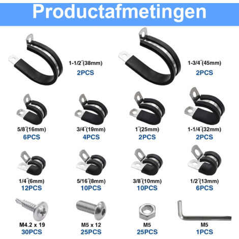 Protection et amortissement des vibrations : l'insert de protection en caoutchouc empêche efficacement les rayures et l'abrasion sur les tuyaux. Fabriqués en acier inoxydable et équipés d'un insert en caoutchouc, ces colliers de serrage offrent une protection optimale et un maintien ferme. Parfait pour organiser les câbles dans la voiture, le bateau, la maison ou l'industrie. Beaucoup plus stables et réutilisables que les colliers à clous traditionnels, les pinces sont également idéales comme colliers de clôture robustes pour la fixation des fils. L'insert en caoutchouc noir souple (similaire à un collier de serrage noir) protège les surfaces sensibles des rayures, amortit efficacement les vibrations et empêche les câbles de glisser. 30PCS, Colliers De Serrage M20 19-20 Mm, Colliers De Serrage En Acier Inoxydable V2a 304 Attaches En Treillis Rigide Pour Trous 98337799 Utilisation universelle : que ce soit comme colliers de serrage pour l'atelier, serre-câbles stables dans le véhicule ou comme colliers de serrage en acier inoxydable résistants aux intempéries pour les colliers de serrage de piscine, ces pinces sont vraiment polyvalentes et la solution parfaite pour d'innombrables projets dans l'industrie, l'artisanat et la maison. Installation sans effort : grâce à son design pratique, chaque collier de serrage peut être monté rapidement et en toute sécurité avec une seule vis. Utilisation : choisissez la hauteur intérieure correspondante du collier de serrage en fonction de l'OD du tuyau, déterminez le trou en fonction du diamètre du trou et de la position du collier de serrage, et verrouillez la vis de fixation Collier Fixation Tuyau Lot De 20 Colliers De Serrage En Acier Inoxydable 304, Réglables De 10 Pince En P Insert Caoutchouc Robuste et durable : nos pinces en P de 10 mm sont fabriquées en acier inoxydable de qualité supérieure. Que ce soit comme colliers de serrage dans l'atelier, comme colliers de serrage durables en acier inoxydable dans le jardin ou pour des installations exigeantes dans le véhicule, ces pinces sont le choix parfait pour les bricoleurs et les professionnels. Ces colliers de serrage en acier inoxydable avec insert en caoutchouc garantissent une résistance absolue à la rouille et une longue durée de vie, idéal pour les applications intérieures et extérieures où une fixation fiable est requise Les avantages en un coup d'œil : Maintien et protection fiables : chaque collier en acier inoxydable 304 est extrêmement robuste, résistant à la corrosion et durable. En même temps, les pinces en P servent de soulagement de traction idéal pour les câbles, amortissent les vibrations et le bruit, assurant ainsi une installation sûre, durable et isolée sans glissement. La solution universelle pour une fixation sûre : colliers de serrage en acier inoxydable de 10 mm de haute qualité Vous cherchez un moyen fiable et professionnel de fixer les tuyaux, tuyaux et câbles de manière ordonnée et sûre ? Nos pinces en P robustes sont le collier de serrage idéal pour tout projet. Fixation professionnelle : comptez sur une installation propre et sûre.