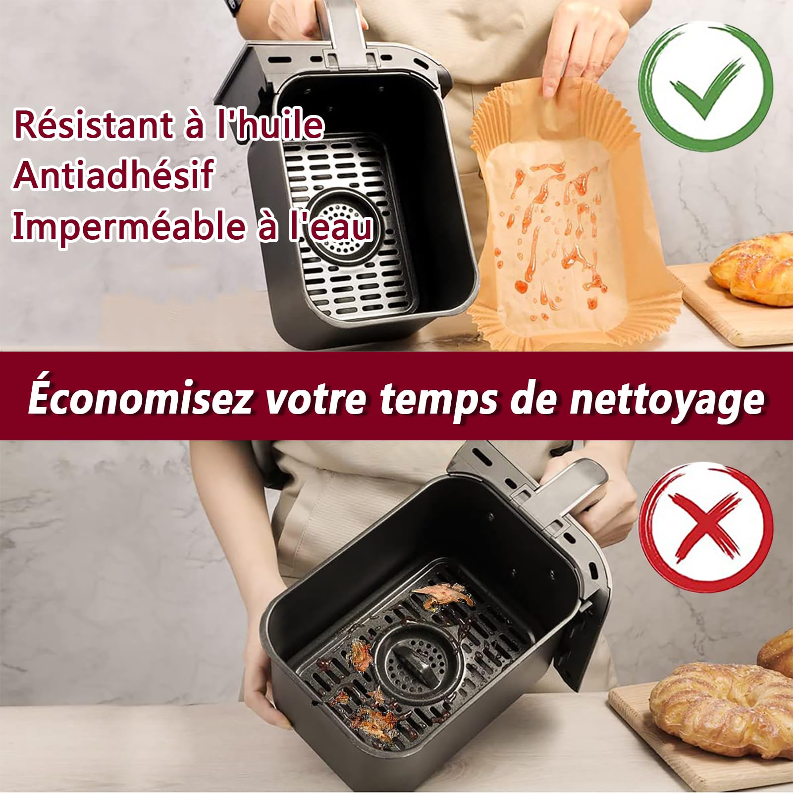 【Facile à utiliser】Nos sets répondent à tous vos besoins et vous permettent de cuisiner sans stress. AiQInu Papier Sulfurisé pour Air Fryer,100 Pièces 20cm Papier Cuisson Petits prix et livraison gratuite dès 25 euros d'achat sur les produits Skyearman. Commandez Accessoires Air Fryer, 100 Pièces 22 x 14cm Papier Rectangulair Sulfurisé et 100 Feuilles 20,5x14cm Papier Perforé Antiadhésif pour Ninja Air Fryer Foodi Dual Zone Double Stack 【Résistant à la chaleur et facile à utiliser】Résiste à la chaleur jusqu'à 232 °C, passe au micro-ondes et au four. 【Papier cuisson de haute qualité pour friteuse】Fabriquées à partir de pâte 100 % de qualité alimentaire avec revêtement antiadhésif de qualité alimentaire, sain, antiadhésif, résistant à la graisse, imperméable, non absorbant, 100 % sûr pour un usage quotidien. Santé et hygiène:papier cuisson air fryer ninja est fabriqué à partir de pâte de bois vierge, non fluorescente et inodore, qui peut entrer en contact direct avec les aliments. Les deux faces sont enduites d'huile de silicone végétale pure. Le Ces filtres jetables antiadhésifs pour friteuse ont tous une forme de bol et une taille exacte, pas besoin de couper ou de plier. Skyearman Lot de 200 Pièces Papier Cuisson pour Ninja Air Fryer Foodi Dual Zone Double Stack et Autres Double Airfryer100 Pcs 22x14cm Rectangulair Paper Liners Friteuse Sans Huile Accessoires compatible avec Ninja AF400EU, AF400EUCP, SL400EU, SL400EUCP100 Feuilles de doublures en papier sulfurisé pour friteuse à air, papier sulfurisé perforé, papier à huile de cuisson, revêtement anti-adhésif pour friteuse à air, fourListe d'emballag: 100 Doublures de friteuse à air comprimé100 Pcs Papier Sulfurisé Perforé Doublures Air Fryer Rectangulaires 22x14cm Papier Cuisson Pour Ninja Air Fryer, 100 Pièces Épaissi 20x14cm Rectangulair Papier Sulfurisé Friteuse Sans Huile Compatible Avec Ninja AF300EU AF400EU SL400EU Et Autres Dual/Double Airfryer Lot 200 Feuilles Rectangulaires