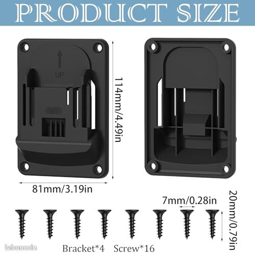 Support Mural Outils Makita 18V Lot 4 Pièces LIFERUN Porte Outils Mural 120 X 60 X 2 Cm, Panneau Rangement Outils Avec 17 Pièces Crochets Et Support Mural Pour Outils Makita 18V Contenu de L'emballage : Vous recevrez 4 porte-outils muraux range outils mural garage noirs pour Makita 18 V et 16 vis. Relaxdays Porte-outils mural, 2 crochets, fabriqué en acier, pour garage/atelier/cave, longueur... Facile à utiliser : Le porte-outils Makita peut être fixé au mur ou au plafond, ce qui est pratique pour suspendre et fixer latéralement des outils électriques. Il peut être installé à l'envers ou sous une étagère, ce qui est pratique pour les bricoleurs et les professionnels de l'atelier Rangement outils résiste aux dommages causés par une utilisation prolongée. Le support pour perceuse mesure 11,4 x 8,1 cm et les vis mesurent 2 x 0,7 cm Organisateur d'outils électriques de rangement mural support en Que ce soit pour un atelier de réparation professionnel ou un espace de bricolage à domicile, le support rangement mural outils s'installe rapidement, vous faisant gagner du temps et de l'énergie Nom du produit :Support de Machine pour Outils de perçage, Supports de Batterie pour Batterie Makita 18 v Caractéristiques : - Grâce à notre porte-outils mural rangement garage, rangez vos outils de manière ordonnée et sécurisée. Application : - Ce porte-outils mécanique en 4 parties permet de ranger plusieurs outils simultanément, répondant ainsi aux besoins de rangement des outils de l'atelier. Caractéristiques du produit : Matériau : Plastique Poids : 160 g Couleur : Noir Dimensions : 16,4 x 8,1 cm Contenu : 4 porte-outils, 16 vis Remarque : Mesure manuelle, veuillez prévoir de légères erreurs de taille. Perceuse électrique rangement outil compatible avec les outils électriques Makita 14,4 V/18 V tels que les visseuses sans fil, les clés à chocs, les marteaux, les perceuses, etc. Rangement outils mural rangez vos outils de manière ordonnée et sécurisée, accrochez-les au mur, rafraîchissez instantanément votre espace de travail et créez un environnement de travail ordonné Il offre un rangement fiable pour vos outils et constitue un support mural fiable Léger, compact et facile à transporter, ce porte-outils pour outils électriques est idéal pour les ateliers.