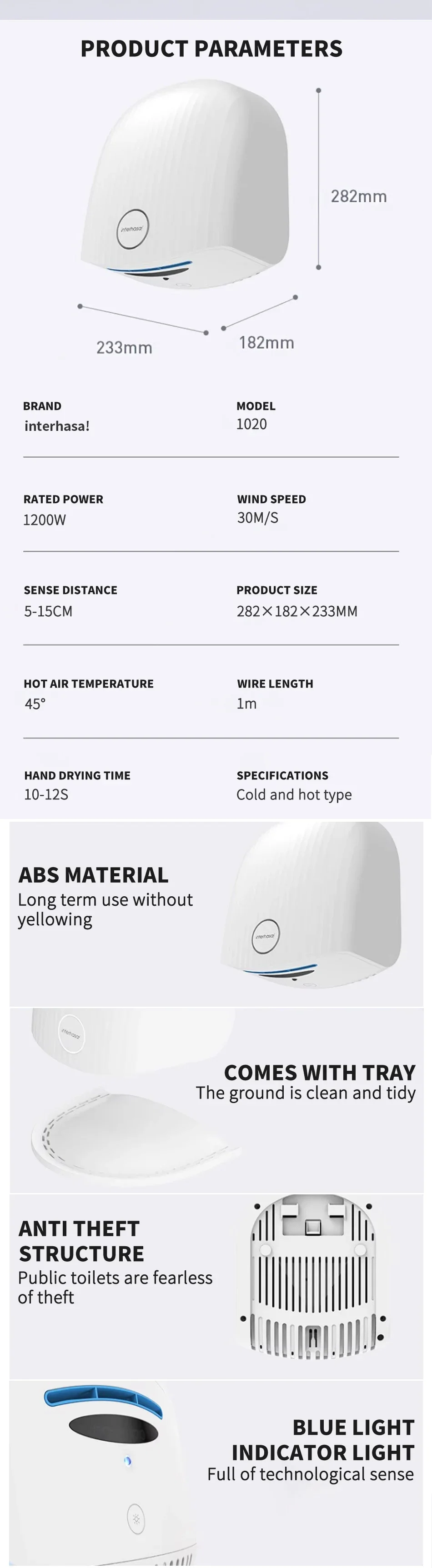Parfait pour une utilisation intérieure, ce sèche-mains automatique est une machine soufflante portable spécialement conçue pour les toilettes des maisons et des hôtels. Sèche-mains électrique automatique à installer au mur. Convient pour une utilisation dans les toilettes publiques, les bars, les restaurants, les magasins, les entreprises, les bureaux, etc., car elle permet d'économiser des serviettes en papier et est plus hygiénique En tant qu'appareil mural, il sèche rapidement les mains et le corps après une douche, offrant une solution fiable pour les besoins de séchage quotidiens. Design acoustique : Expérimentez un faible niveau sonore avec ce sèche-mains au fonctionnement doux et discret, spécialement adapté aux zones sensibles en milieu professionnel ou domestique pour une réduction efficace du bruit. Performance aérodynamique : Flux d'air puissant et régulier assuré par un moteur DC robuste, permettant un séchage des mains rapide qui simplifie les tâches quotidiennes sans effort Appareil Séchage Mains Corps 45°C Sèche-mains électrique Tactile Mural Automatique Puissant Appareil Détection Mains Son installation simple et son fonctionnement automatique en font un choix pratique pour divers environnements. Technologie intelligente : Équipé de capteurs performants pour une activation automatique au passage des mains. Offre une expérience sans fiable, parfaite pour les lieux partagés grâce à son fonctionnement sans . Ce sèche-mains est un ajout précieux pour optimiser le confort et l'efficacité dans les espaces partagés. Sèche-mains électrique,Sèche-mains haute vitesse 220V,pour dominrooms Idéal pour cuisines, salles de bains et espaces restreints. Sèche-mains èlectrique Twister Seche-mains a aire pulsé (sans filtre EPA E11) Twister Seche-mains a aire pulsé (sans filtre EPA E11) Kari Filtre HEPA 11 pour Karì KARÌ Sèche-mains électrique - Vers. Pro (avec moteur brushless) KARÌ Sèche-mains électrique - Vers. Pro (avec moteur brushless) KARÌ Sèche-mains électrique - Vers