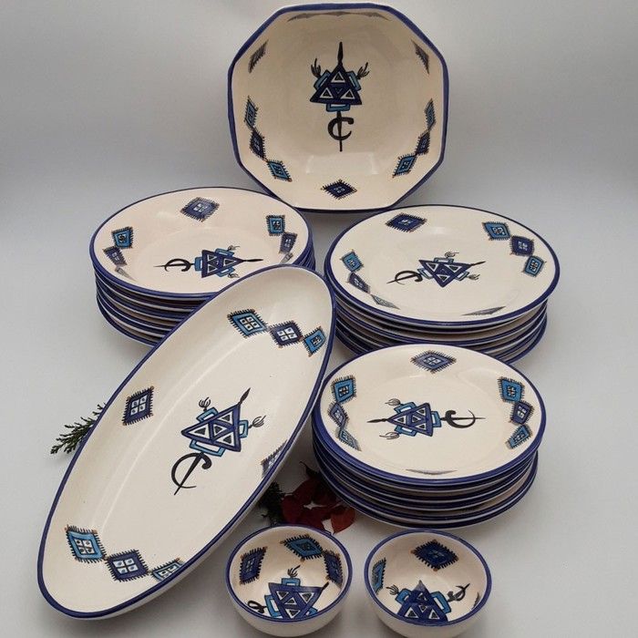 Service avec assiettes à couscous et plats de service peut également être utilisé pour des plats exotiques ou des recettes plus traditionnelles comme les pâtes, la paëlla, la choucroute. Service à couscous disponible en 6 personnes, 8 personnes et 12 personnes. Service à couscous original avec ces motifs orientaux pleins de charme et sa couleur bleu profonde, permet de recevoir ses amis ou de partager de bons moments en famille autour de la table. Assiettes Couscous Bakir Bleu 6 Personnes Cocotte Plat Tebsi Service Tajine Assiettes Creuses Bakir Bleu - 6 Pers Plat Couscous Traditionnel Service tajine assiettes creuses Bakir bleu - 6 pers Service à couscous de 6 personnes idéal pour partager de délicieux moment en famille ou entre amis.Besoin de plus d'assiettes ou de plats supplémentaires, vous trouverez ce dont vous avez besoin dans la collection bakir bleu ou en une autre couleur pour un effet plus moderne sur votre table.Service à couscous disponible en 6 personnes, 8... Idéal pour un cadeau