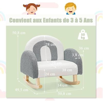 Matériau de qualité et cadre stable — Le cuir PU de haute qualité confère au canapé une surface lisse et respirante. Bénéficiant d'un look haut de gamme comme un canapé en cuir, notre fauteuil inclinable pour les garçons et les filles complète également presque tous les décors d'intérieur et est sûr d'ajouter un bel élément à la salle de jeux ou au salon de votre enfant. Puériculture & Eveil bébé - Découvrez notre offre DREAMADE Fauteuil Inclinable Salon pour Enfant, en Cuir PU, avec Repose-Pied et Dossier Réglable, Poche Latérale, Charge 50KG, Bleu Fauteuil relax inclinable avec roulettes et repose-pieds en tissu... Le cadre solide en bois massif et le cadre en fer peuvent supporter un poids de 50 kg. Fauteuil Inclinable électrique Gris Similicuir - Fauteuil Inclinable Electrique Gris Similicuir Fauteuil Inclinable Electrique Fauteuil Relax Chaise Inclinable Simuli Cuir Canape Lit 86680045 Assemblage sans effort et entretien facile — Il suffit de 3 étapes simples pour assembler le fauteuil rembourré. De plus, les surfaces en cuir plastifié PU facilitent l'entretien quotidien. Fauteuil Rotin Enfant GIANTEX Fauteuil Relax Avec Repose-Pied Pliable,Oreiller,Poche Latérale Fauteuil Enfant 2 Ans Caractéristiques : L'éponge à rebond élevé offre une expérience d'assise confortable Canapé inclinable réglable pour s'asseoir, lire ou dormir 2 grandes poches latérales pour garder les petits objets des enfants à portée de main La surface en cuir plastifié PU est respirante, lisse, facile à nettoyer La structure en bois massif et en acier peut supporter jusqu'à 49,89 kg 4 pieds antidérapants ajoutent une stabilité globale et réduisent les bruits Cadeau infaillible pour garçons ou filles de 3 à 12 ans Spécifications : Couleurs : ensemble noir + rouge/bleu Matériaux : Éponge, Cuir plastifié PU, Bois, Acier, Plastique Dimensions du produit : 68,5 cm x 53,3 cm x 73,6 cm (L x l x h) Dimensions du fauteuil couché : 104,1 cm x 53,3 cm x 64,7 cm (L x l x h) Hauteur d'assise : 35,5 cm Poids net : 12,47 kg Capacité de poids : 50 kg Âges appropriés : 3-12 ans Livraison : 1 x fauteuil inclinable pour enfants 1 x notice de montage Description : Si vous êtes à la recherche d'un fauteuil confortable, alors le fauteuil inclinable pour enfant est certainement celui qu'il vous faut ! Ce canapé inclinable pour enfants est encadré de bois massif et d'acier et rempli d'éponge épaissie, ce qui procurera à votre enfant une sensation de confort.