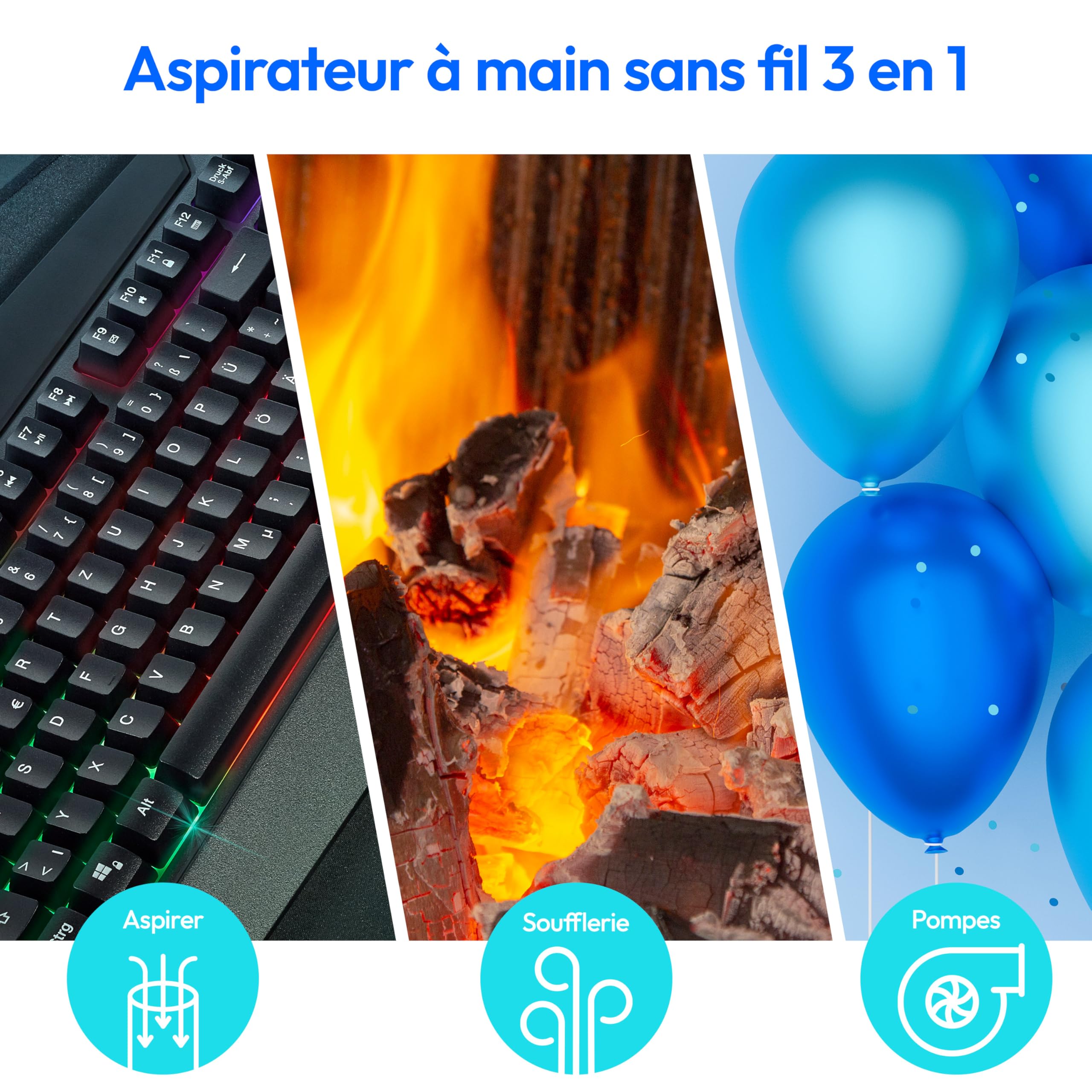Léger, rapide et toujours prêt à l'emploi ! Que ce soit à la maison, au bureau ou en déplacement, cet appareil multifonctionnel est votre partenaire fiable pour un environnement propre et bien rangé. 3 en 1 pour une flexibilité maximale ! La buse pour joints avec brosse rétractable permet un nettoyage en profondeur, par exemple dans l'habitacle d'une voiture, pour une flexibilité maximale dans tous les domaines d'application ! Aspirateur Balai & À Main Sans Fil 3en1 MS-VC301 – MultiSmart De plus, l'aspirateur à main sans fil 3en1 offre une multitude d'accessoires pratiques d'aspiration et de soufflerie, adaptés aux besoins les plus divers. Grâce à ses différents embouts d'aspiration et de soufflage, cet aspirateur est véritablement polyvalent. Avec une puissance d'aspiration allant jusqu'à 5 kPa et une puissance de 60 watts, il élimine sans peine la poussière, la saleté et les miettes, que ce soit sur les coussins, les tapis ou les surfaces dures. Grâce à son sac de rangement pratique, vous l'avez toujours à portée de main, idéal pour les déplacements ou à la maison ! Idéal pour un nettoyage hygiénique et efficace, partout et à tout moment ! Puissance d'aspiration élevée : jusqu'à 5 kPa avec réservoir à poussière intégré (capacité 150 ml). Fonction Pompe à air et soufflerie : pour une utilisation polyvalente, avec filtre HEPA13 lavable Le bac à poussière intégré de 150 ml facilite le nettoyage, tandis que le filtre HEPA13 facilement amovible et lavable filtre efficacement les particules les plus fines. Fonction de pompe à air, par exemple pour les ballons, ou accessoire de soufflerie pour nettoyer les claviers, etc. Petits prix et livraison gratuite dès 25 euros d'achat sur les produits MEDION. Commandez MEDION Aspirateur à Main (Moteur BLDC, Filtre HEPA 13, Filtration poussières allergènes, Puissance d’Aspiration 20 kPa, Batterie, Station de Charge, sans Fil, MD12057), Gris Pratique, le réservoir à poussière intégré peut contenir jusqu'à 150 ml et peut être facilement retiré et nettoyé, tout comme le filtre lavable HEPA13, pour une utilisation hygiénique à chaque utilisation. Puissance compacte – Une puissance d'aspiration élevée pour un nettoyage sans effort Découvrez une propreté impeccable grâce à une puissance d'aspiration pouvant atteindre 5 kPa et une puissance de 60 watts. La puissante fonction d'aspiration élimine efficacement la poussière et la saleté, tandis que la fonction soufflerie permet d'atteindre sans effort les endroits difficiles d'accès. Avec seulement 400 grammes, cet aspirateur est particulièrement maniable et confortable à utiliser. Aspirateur Cendre Aspirateur À Main (Batterie, Sans Fil, Aspirateur 3En1 Aspirateur Sans Sac Et grâce au temps de charge rapide de 2 heures maximum via le câble USB-C moderne, il est de nouveau prêt à l'emploi en un rien de temps. autonomie jusqu'à 10 minutes par charge, rechargeable par câble USB-C (max., 2 heures) Description du produit L'aspirateur à main sans fil 3en1 est la solution parfaite pour tous ceux qui recherchent un appareil de nettoyage puissant, portable et multifonctionnel. Accessoires : suceur/brosse à fentes 2en1, embout de soufflage long avec brosse emboîtable (165 mm), 3 valves de pompe à air différentes, adaptateur pour aspirer l'air, câble de chargement USB-C, sac de rangement