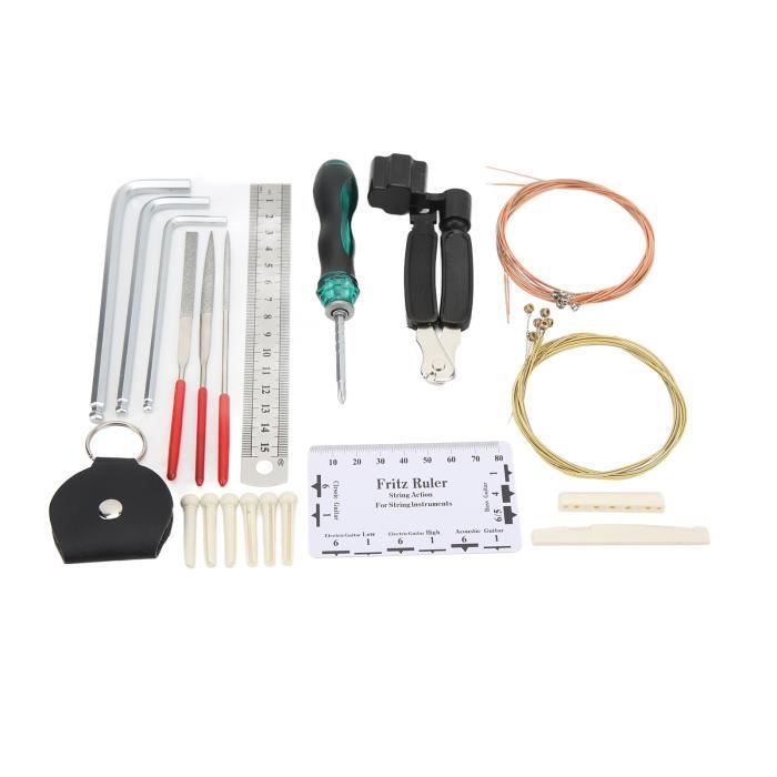 * Dispose d'un corps en alliage, compact et léger, portable à transporter. Fini les serviettes enroulées : notre support de manche de guitare en liège a une finition lisse qui offre un soutien et une stabilité ultimes pour soutenir votre instrument pendant les réparations et l'entretien * Les extrémités sont à double encoche et s'adaptent aux deux profils les plus courants : la pente douce et la forme plus triangulaire trouvée. Fabriqué avec un corps en alliage de haute qualité, cet outil est non seulement compact et léger, mais aussi incroyablement , ce qui le rend parfait pour une utilisation en déplacement. Doté d'un corps en métal lourd et de filetages usinés robustes, cet outil offre une stabilité et un réglage précis de la hauteur sans aucune oscillation, des réparations précises à chaque fois. Outil Lutherie Portable LEKATO Kit D'outils D'entretien De Guitare, 25 Outils De Support Collage Guitare * Dispose d'un corps en métal lourd qui reste en place lorsque vous ajustez la hauteur, et des filetages usinés robustes (pas de vacillement) Caractéristiques : Nom du produit : outil de réparation de guitare., Couleur : noir., Longueur : 80 mm., Poids : environ 33 g., Quantité : 1 pièce. Conçu pour offrir une solution plus solide et plus rapide pour coller des guitares en vrac, cet outil simplifie le processus de réparation et assure une adhérence sûre et durable. Avec des extrémités à double encoche, il s'adapte aux deux profils les plus courants : la pente douce et la forme plus triangulaire, ce qui le rend polyvalent pour différents modèles de guitare. Les autres accessoires figurant sur les images ne sont pas inclus. CONÇU POUR UNE installation facile pour guitare acoustique jazz folk Veuillez vous référer à l'article physique. Le support d'outils de réparation est un incontournable pour tout luthier de guitare acoustique ou amateur de bricolage. Fabriqué avec un corps en alliage de haute qualité, cet outil est non seulement compact et léger, mais aussi incroyablement , ce qui le rend parfait pour une utilisation en déplacement