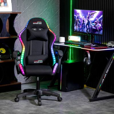 Bureau Gaming X-Rocker Lumio XL - LED RGB - Accessoires informatique Marque: AMSTRAD Amstrad AMS 910 LED BK, l'élégance noire illuminée 366 effets lumineux LED, ambiance personnalisée Inclinaison jusqu'à 135° pour un confort optimal ✅ Coussin lombaire & appui tête Amstrad vous propose sa chaise gamer à LED AMS 910 LED BK Points forts: Eclairage LED statique ou dynamique automatique Télécommande incluse 366 modes lumineux automatique ou au choix Caractéristiques: • Coloris: noir et revêtement en tissu • Télécommande de contrôle • 366 modes lumineux automatique ou au choix • Mode fixe couleur: Rouge, Vert, Violet, Jaune, Bleu et Cyan... Siege Gamer Amstrad AMS LED FUSION BK Fauteuil / Chaise De Bureau Gamer Noir Avec Chaise Gamer Led ✅ 2 accoudoirs - Dossier inclinable jusqu'à 135°