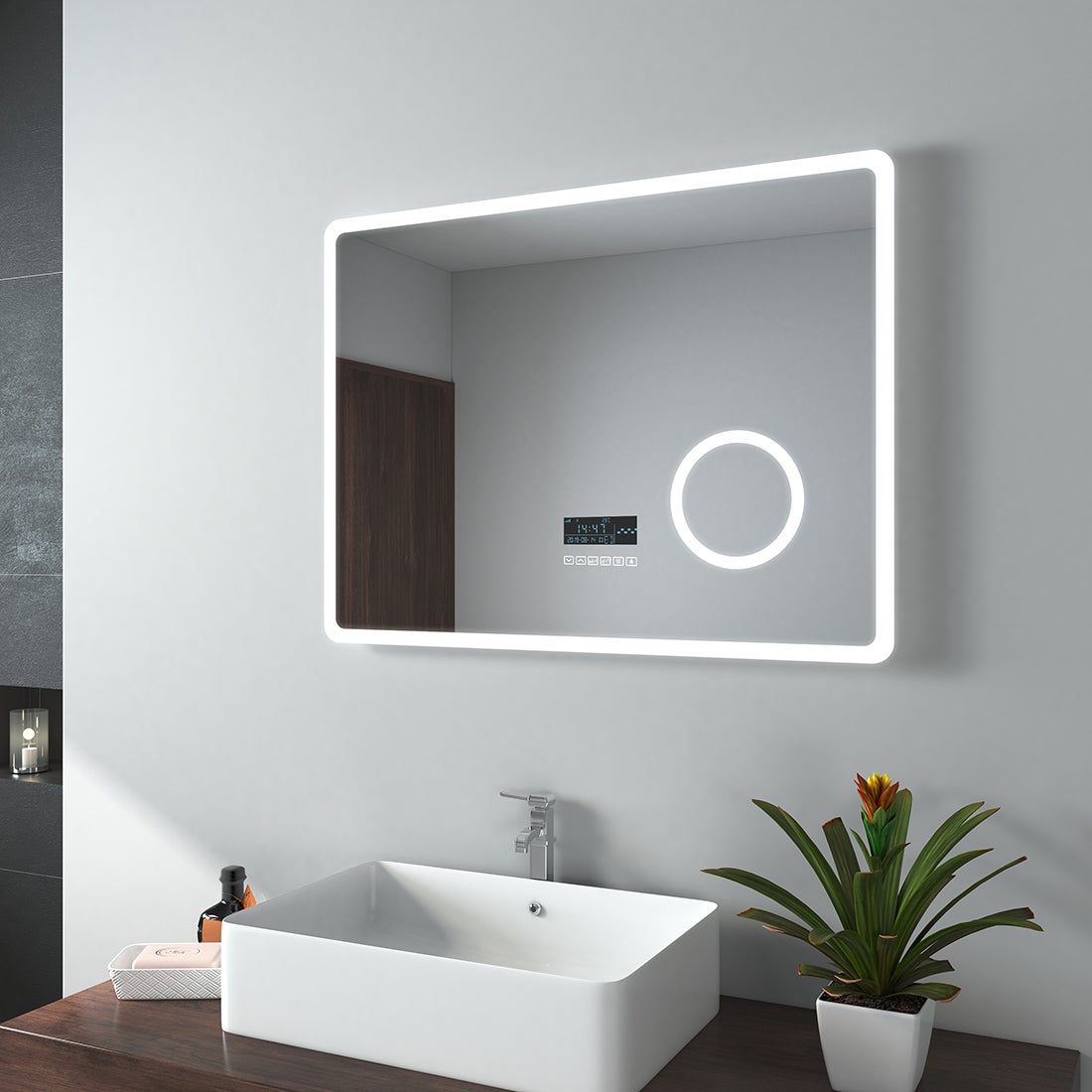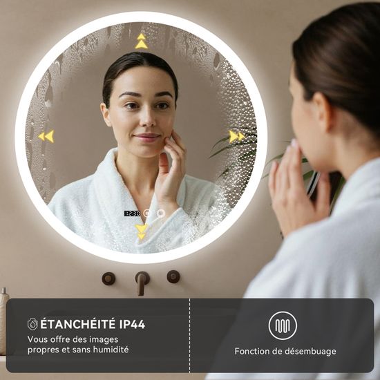 Commodité et durabilité Utilisez l'interrupteur tactile pour régler facilement différentes lumières et luminosité. Une touche courte allume la température de couleur, une longue pression sur le bouton change la luminosité de la lumière. Spécifications du miroir de salle de bain : Material: explosionssicherer Silberspiegel + LED-LichtleisteHelligkeit: warm (3000K) / neutral (4500K) / weiß (6000K)Größe: 400 x 500 mm, 400 x 600 mm, 500 x 700 mm, 600 x 800 mm. Montrez la plupart des vrais et beaux CLIPOP Miroir avec éclairage, miroir de salle de bain LED Interface USB Ce miroir suspendu est facile à utiliser grâce à l'interface USB. Le miroir est étanche IP44 et anti-oxydation. Image HD sans distorsion : Le miroir LED est poli, la surface du miroir est lisse et lumineuse, l'effet est idéal. Vous pouvez choisir la bonne taille de miroir en fonction de la zone suspendue de la pièce. Miroir suspendu de qualité supérieure pour la salle de bain - Le miroir de salle de bain mural est fabriqué en miroir argenté de haute qualité, anti-explosion, robuste et durable. CLIPOP Miroir avec éclairage, miroir de salle de bain LED pour salle de bain, mural, miroir d'éclairage 3 couleurs, interrupteur tactile, miroir de maquillage (40 * 50 cm Veuillez noter : ce miroir de salle de bain utilise une prise USB Facile à installer, vous recevrez un miroir mural complet et stable pour salle de bain. Premium Miroir avec LED Illumination Salle de Bain (150x100cm) LED... Clipop Miroir de salle de bain Surface miroir lisse et claire Les miroirs LED sont polis pour une surface miroir lisse et brillante pour des résultats optimaux. En appuyant longuement sur le bouton, vous pouvez changer la luminosité de la lumière. Miroir vanité à intensité variable Ce miroir de salle de bain moderne et élégant peut être contrôlé via un interrupteur tactile. Plusieurs occasions : ce miroir LED mural est disponible en différentes tailles. GBLY Miroir De Salle De Bain Avec éclairage - LED 60x80 Cm Miroir Mural De Salle De Bain IP44 Avec Interrupteur Tactile Et Horloge Fonction Antibuee Miroir Lumineux A Intensite Variable 3000k 6500k 84638207 Montrez votre véritable et belle moi. Nous veillerons à ce que le miroir mural arrive en toute sécurité. Vous pouvez également changer la luminosité de la lumière. Si vous avez des questions, n'hésitez pas à nous contacter