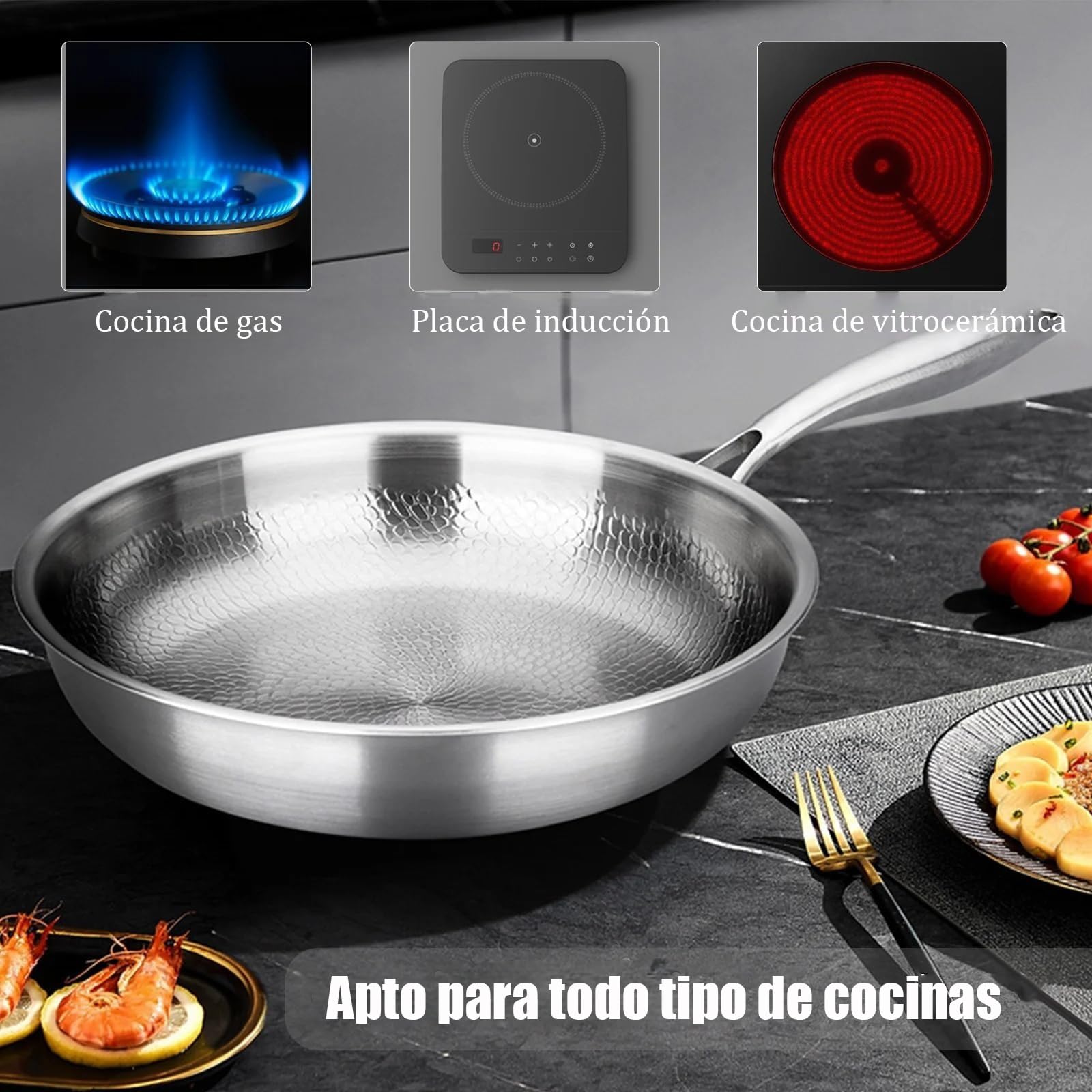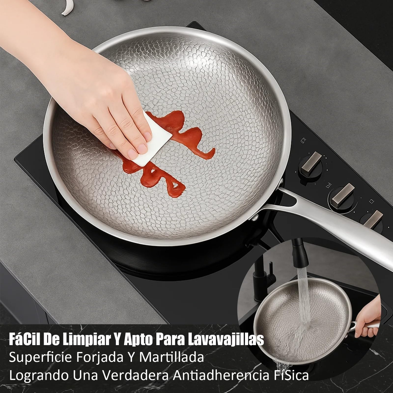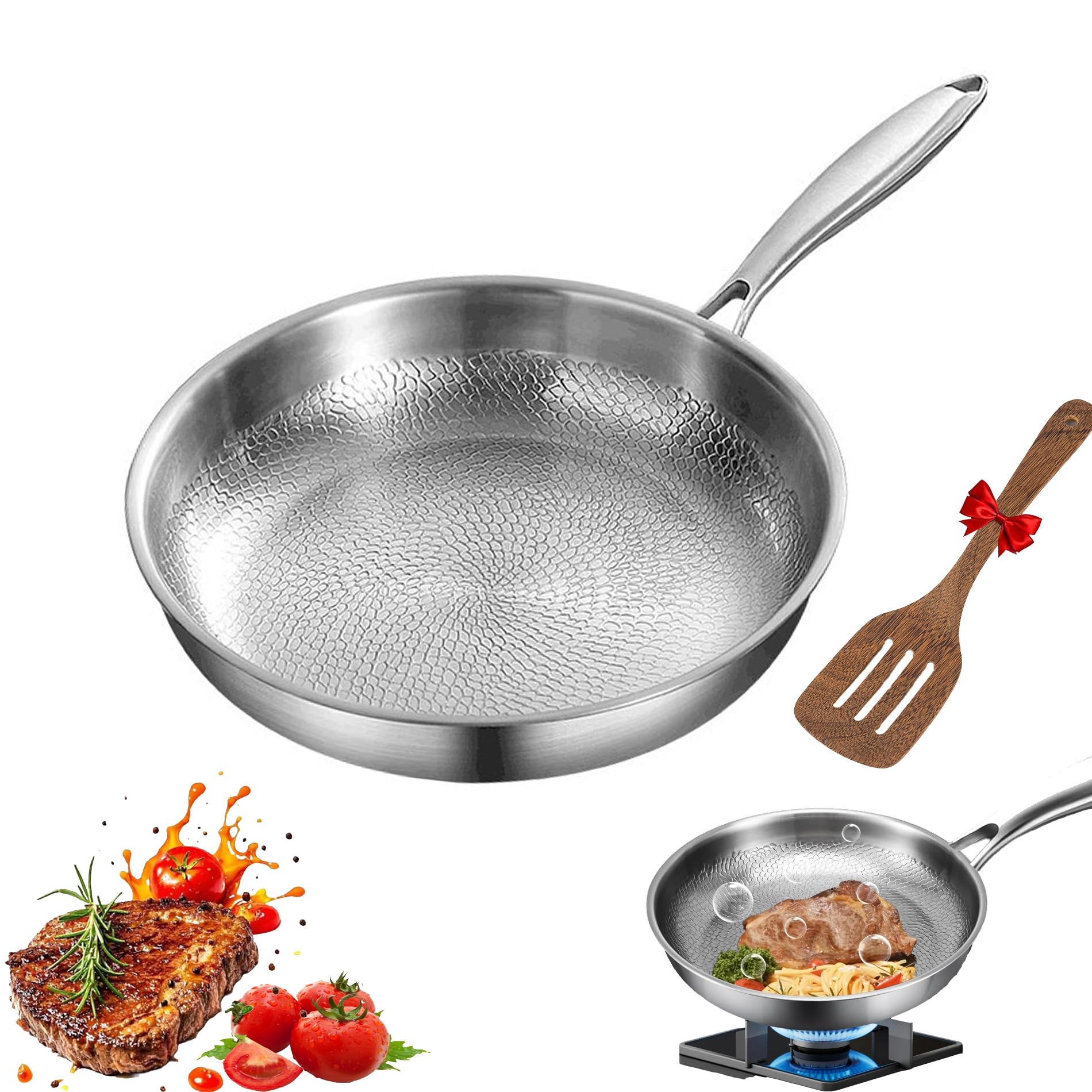 Pour une performance optimale à long terme, nous vous recommandons de suivre les instructions d'entretien fournies. 28 cm (sans couvercle) : 1,006 kg. Contenu : 1 ensemble de poêles Titanium Pro 1 spatule Conseils d'entretien : Passe au lave-vaisselle. Facile à soulever, facile à utiliser et conçue pour un usage quotidien. 30 cm (avec couvercle) : 1,786 kg. Poêle à frire Chef en inox non revêtu - D: 28 cm - lisse (sans couvercle) - Maison 【Naturellement Antiadhésif, Sans Revêtement】 La surface martelée de cette poêle en titane permet aux aliments de glisser facilement ; aucun revêtement chimique ni écaillage. Des repas plus sains et un nettoyage rapide après chaque utilisation. CAROTE Enseble de casseroles antiadhésives avec couvercle, casserole à... Poele Titane Martelé Poêle En Acier Inoxydable De 28 Cm Avec Couvercle, Poêle À Induction Avec Revêtement En Poêle Saine Durable L'entretien de votre poêle en titane est un jeu d'enfant. 30 cm (sans couvercle) : 1,163 kg. La poêle TitaniumCook combine la puissance de saisie de l'inox professionnel et la pureté absolue du Titane. C'est la fin des poêles qui s'écaillent et des produits chimiques dans votre assiette 28 cm (avec couvercle) : 1,570 kg. 【Conçue Pour Durer Toute Une Vie】 La poêle en titane est fabriquée à 100 % en titane pur, ce qui lui confère une résistance à la déformation, à l'écaillage et à la rouille. Matériau : Titane + acier inoxydable 304., Aluminium + acier inoxydable 430., Poids : 26 cm (sans couvercle) : 1,006 kg. 【Une Poêle Pour Chaque Cuisinière】 Compatible avec les plaques de cuisson à gaz, électriques et à induction.