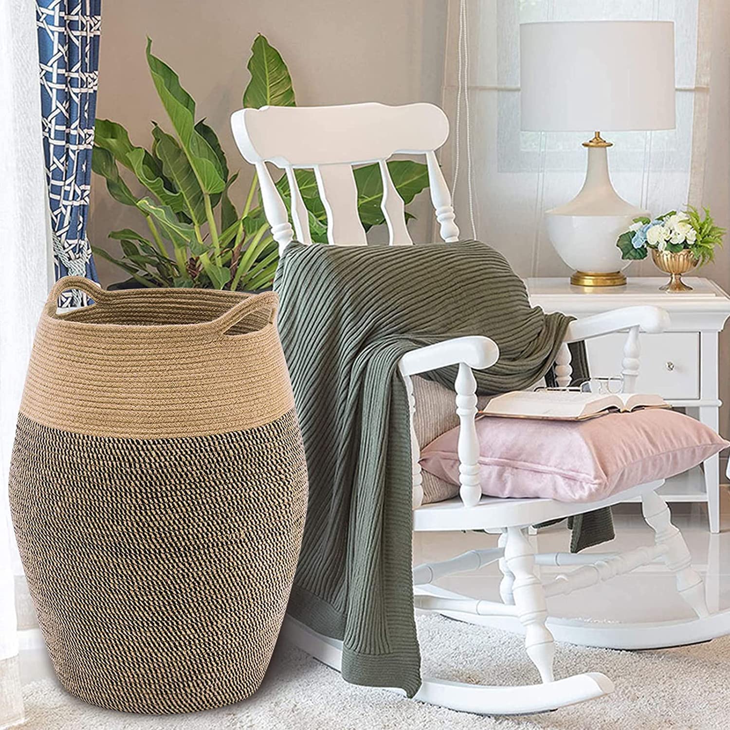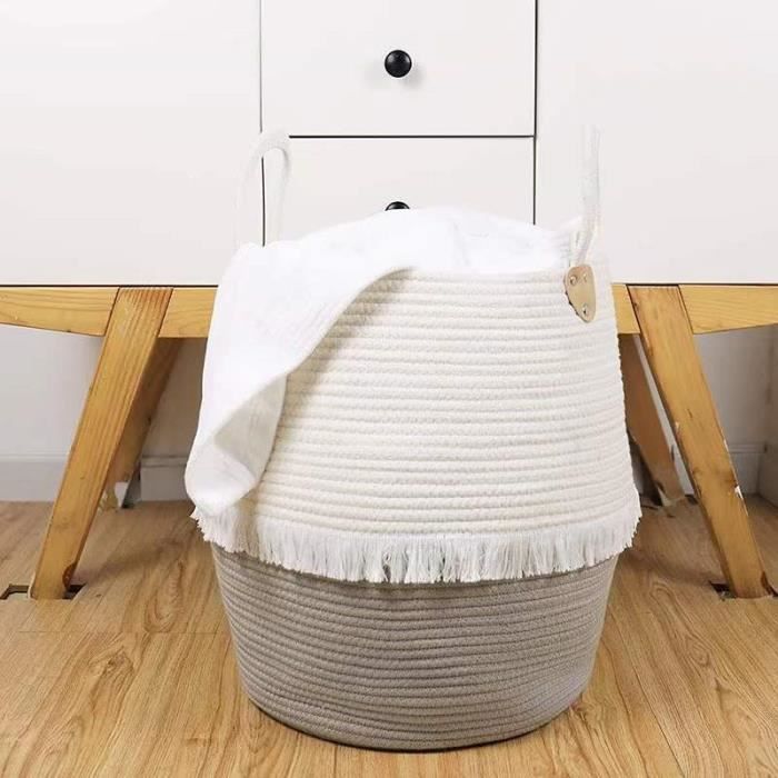 Panier Bébé Jouets Blanc Et Jute Pot De Fleur,Panier à Linge En Corde De Coton, Conteneur Pour Vêtements Panier Rangement Veuillez noter que même si ces paniers à linge rectangulaires sont pliés pendant le transport, ils retrouveront rapidement leur forme élégante en les chargeant simplement de serviettes ou de couvertures. Grand panier de rangement : avec ses dimensions de 55 cm (L) x 38 cm (l) x 29 cm (H) et sa capacité spacieuse de 65 litres, il est idéal pour ranger des... 65L Paniere Linge, Paniere a Linge en Corde de Coton,Panier de Rangement Sale Osier,Panier Rangement Bebe pour Jouets avec poignées, Corbeille a Linge(Jute Ce grand panier de rangement est idéal pour ranger les couvertures, les coussins, les écharpes, les serviettes et les peluches grâce à ses dimensions de 55 cm (L) x 38 cm (l) x 29 cm (H) et à sa grande capacité de 65 litres. Pour éliminer plus rapidement les plis, un fer à repasser sera votre meilleur allié. PETITE PANIERE A LINGE AVEC COUVERCLE FACON CORDE NOIR En tant que cadeau, ce panier décoratif s'intègre parfaitement dans une buanderie, une chambre à coucher, une chambre d'enfant ou un salon grâce à son design coloré unique. Paniers à linge, paniers à linge pliables, grands paniers à linge -Couleur : Jute et blanc/Jute et -Matière : coton -Dimensions du produit : 55 (diamètre) x 29 (hauteur) x 38(largeur)cm Le panier à linge est polyvalent. -Buanderie : idéale pour ranger le linge sale de toute la famille. -Rangement : le panier peut être plié lorsqu'il n'est pas utilisé et ne prend pas de place. -Nettoyage : lavable en machine, il est recommandé de le mettre dans un sac à linge. Pour les familles ayant des enfants en bas âge ou des animaux domestiques, il ne rayera pas les vêtements et n'abîmera pas la peau, ce qui en fait un ajout attentionné à la maison. Grâce à son design rectangulaire et à ses deux poignées robustes intégrées, ce panier peut être utilisé non seulement comme coffre à jouets, panier à vêtements, panier à serviettes, mais aussi comme rangement dans la salle de bains. Pour ranger les couvertures, les coussins, les jouets, etc.