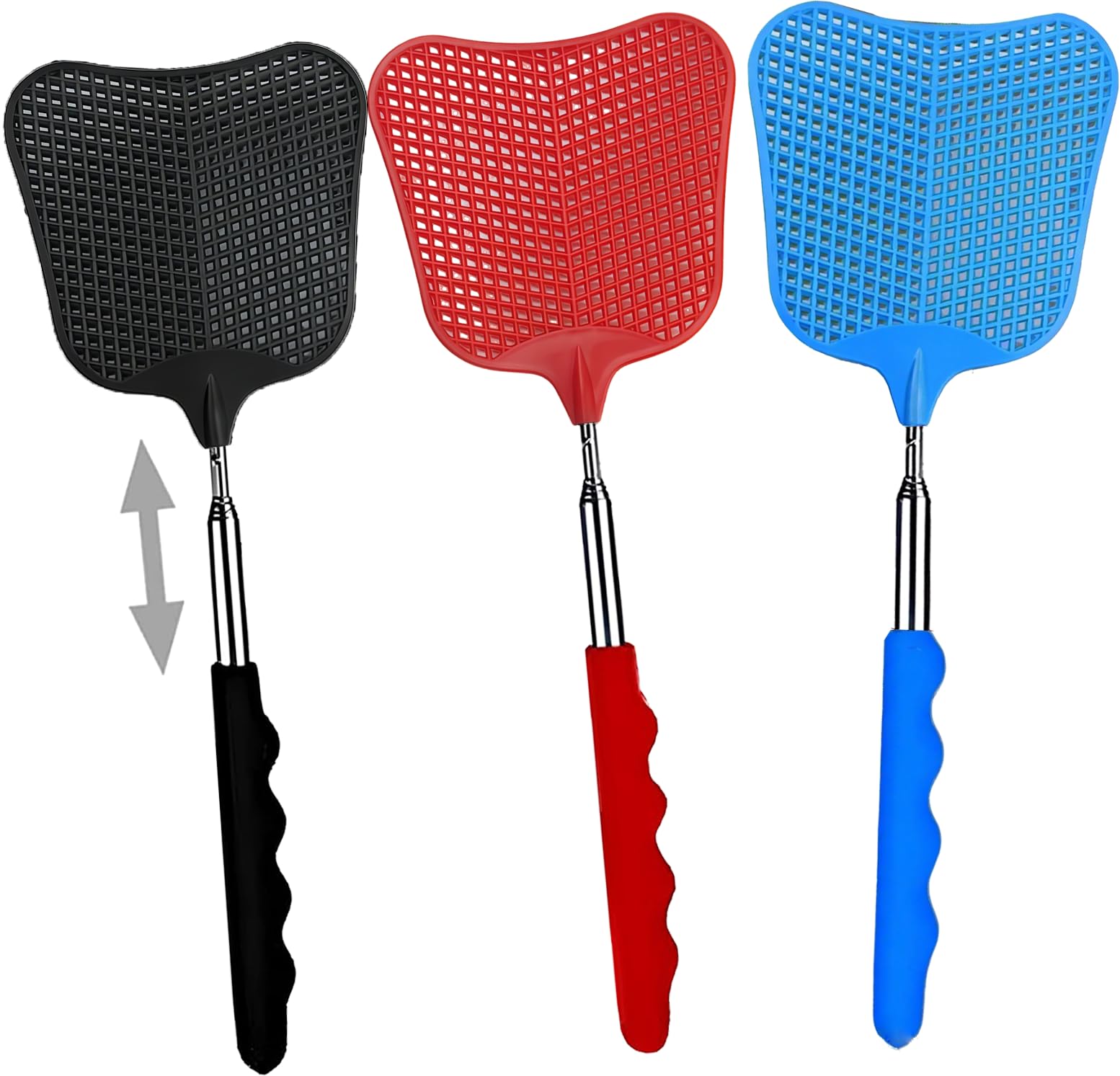 Cette tapette à mouches est fabriquée avec des matériaux de haute qualité, la poignée est en acier inoxydable, solide et antidérapante ; la surface de la tapette est en plastique à haute élasticité, léger et durable, pas facile à casser, et peut être utilisée pendant une longue période tout en conservant de bonnes performances. Ce set de tapettes à mouches contient 3 couleurs différentes de tapettes,Noir Bleu Rouge, ce qui représente un design magnifique et généreux, et offre également une variété d'options pour la lutte contre les nuisibles à la maison. La tapette à mouches est pratique en toutes saisons, qu'il s'agisse de lutter contre les moustiques en été ou d'éliminer les invités indésirables en d'autres saisons, cette tapette à mouches est facile à utiliser et répond aux besoins de différents scénarios. 3x Tapettes à Moustique électrique Raquette électrique Volants Mouches Avec 3 Couches De Maille De Securite 93583588 Convient pour l'intérieur et l'extérieur, pour la cuisine, le jardin, la caravane, le camping, les barbecues, éloigne les mouches de vous, rend la vie plus propre ! 3 pièces (longueur étendue 73cm) grande tapette à mouches extensible pour la lutte manu contre les nuisibles avec manche télescopique, durable et robuste, léger et de bonne qualité Tapette à Moustique à Charger 3 Pièces Tapette à Mouches Extensible, Tapette à Mouches Télescopique Tappette à Mouches Tapette à mouche télescopique, manuel de chasse à mouche | Lot de 3 contrôleurs de mouches, chasse-mouche pour charges lourdes, mouche manuelle portable avec poignées extensibles pour extérieur/salle