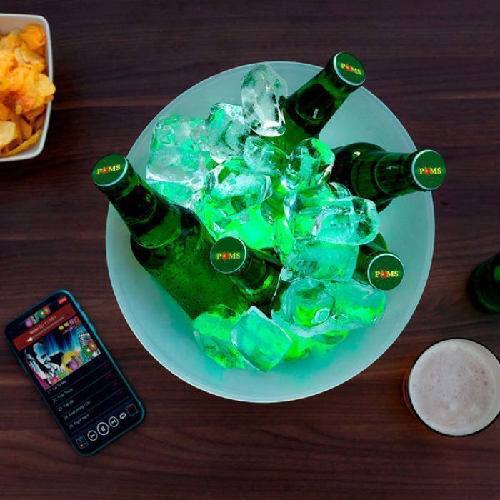 FUYO Seau à Glace LED 3-en-1 avec Haut-Parleur pour Accessoire Fête Intérieur Extérieur YOBANSA 8L Acrylique Grand Seau à Glace, Seaux à Champagne Seau à Seau Réfrigérant Pour Champagne Et Bière Utilisez-le lors de fêtes, bars à cocktails ou même réunions sur la plage pour une solution de boisson élégante et pratique. Contenu de l'emballage : seau à glace LED avec haut-parleur Bluetooth Idéal pour les soirées barbecue, les bars à cocktails et les réunions de jardin, il améliore votre événement avec style et commodité. Haut-parleur Bluetooth 3D Surround Sound : profitez d'un son cristallin avec un haut-parleur Bluetooth 3D intégré. Connectez votre téléphone ou tablette sans effort pour jouer vos morceaux préférés tout en refroidissant des boissons dans un seau pour une expérience de fête Grande capacité de 5 L pour les boissons : avec une capacité de 5 L, ce seau à glace peut contenir 2 bouteilles de champagne et jusqu'à 6 bouteilles de bière (330 ml). Grand seau à glace en teak de Jens Quistgaard Polyvalent pour toutes les occasions : des bars à la maison aux pique-niques en plein air, ce seau à glace ananas est parfait pour les fêtes, les barbecues et les événements spéciaux. Contenu de l'emballage : seau à glace LED ananas avec haut-parleur : ce seau à boissons est livré avec un haut-parleur Bluetooth LED, créant une atmosphère amusante pour les fêtes.