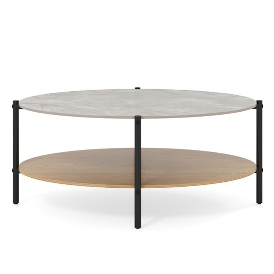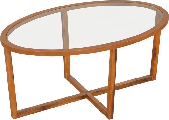 GOPLUS Table Basse Ovale En Bois De Caoutchouc Avec Étagère