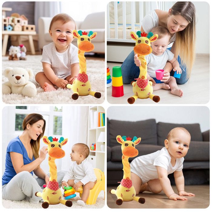 [Girafe en peluche pour bébé] Les jouets interactifs en forme de girafe musicale ont également une fonction interactive amusante. La fonction d'imitation vocale peut répéter automatiquement ce que vous dites, stimuler l'intérêt des enfants pour le chant et la parole, et cultiver leur sens du rythme Le cou flexible et les mouvements du corps améliorent la coordination œil - main et l'imitation, un jouet de puzzle qui combine divertissement et Illumination pour soutenir le développement sensoriel et cognitif des enfants. Les Oies Sauvages Une Peluche Qui Chante, Répète Et Amuse Sans Arrêt ! Douce Et Moelleuse, Cette Girafe Musicale Joue 10 Chansons, Répète Tout Ce Qu’on Lui Dit Et Devient Vite Le Compagnon Préféré Des Enfants Jouet Interactif Chantant Description du produit Matériel: ppcotton Poids 240g Taille de l'emballage: 12 × 12 × 32cm Méthode d'emballage: Opp Capacité de la batterie: 350mah Mode d'alimentation: UAB charge Liste: 1 * jouets de girafe Avertissement De Sûreté Ce produit convient aux enfants de plus de 3 ans, veuillez l'utiliser sous la surveillance d'un adulte; Évitez de jouer à haut volume pendant de longues périodes et protégez l'audition des enfants. Parfait pour les enfants de tous âges! Charge, longue durée de vie: batterie au lithium rechargeable intégrée de 350mah, rechargeable facilement via l'interface USB, pas besoin de changer la batterie fréquemment, réduire les déchets électroniques. FYDUN Jouet tortue musical pour bébé Jouet de Tortue Musicale pour bébé... 4 Pièces Jouet de Girafe à Ventouse Télescopique, Jouets Sensoriels de Conception interactive intelligente: encouragez votre enfant à parler et à exercer son expression verbale et sa sensibilité auditive grâce à des fonctions d'enregistrement, d'imitation et de réglage du volume. La machine entière n'a pas de bords tranchants, les coutures sont solides, résistantes à la préhension et au jeu, ce qui garantit un câlin prolongé, une caresse et une tranquillité d'esprit et un confort confortables pour le bébé. Talking Dance Music girafe Toy: Ce jouet en peluche de girafe Mignon non seulement danse avec de la musique, mais aussi « répète» clairement ce que l'enfant dit pour une expérience interactive surprise.