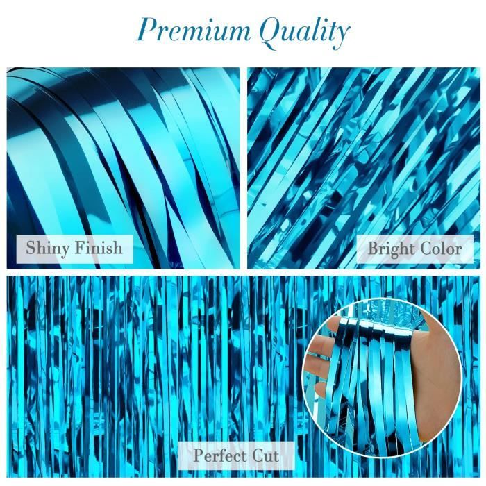 Matériau de haute qualité : Ces rideaux à pompons sont fabriqués en paillettes bleu clair avec une finition brillante. Ils sont non toxiques, inodores et résistants à la décoloration. Ils sont donc parfaits pour un anniversaire de sirène ou une baby shower La Reine des Neiges Facile à utiliser : il y a un ruban adhésif double face à l'arrière, il suffit de détacher le ruban et de le coller au mur, à la porte ou partout où vous voulez faire briller la fête. Rideau Pailleté Rideaux MéTalliques Tinsel/Rideau à Franges En Aluminium, Decorados Fond Para FêTe D Rideau Pailleté Bleu Clair Vous pouvez également modifier la longueur ou la largeur selon vos besoins. À la fin de la fête, enroulez le rideau de pluie de manière ordonnée et préparez-le pour la prochaine fête. Pour la deuxième utilisation, vous devrez utiliser votre ruban adhésif. Large application」Ces rideaux en aluminium brillant sont parfaits pour une fête d'anniversaire, un mariage, Noël, une fête d'anniversaire, une cérémonie, une toile de fond de scène, une discothèque, une baby shower, un spectacle de mariage, une toile de fond de photographie, un photomaton, etc Rideau Pompons Brillant 2 Rideaux à Franges Métalliques Bleu Azur Ce rideau d'anniversaire étincelant est parfait pour être accroché à l'entrée ou à côté du mur pour un fond photo étincelant. Le rideau de pluie est assez large pour ne pas tomber facilement. Matériau de haute qualité : ce rideau à pompons métalliques est fabriqué en feuille d'aluminium avec une surface brillante, non toxique et ne se décolore pas.