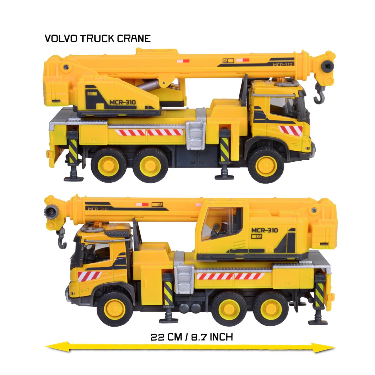Pour filles et garçons à partir de 3 ans, pour les collectionneurs de tous âges - Pour tous ceux qui aiment les véhicules. Découvrez le Volvo FMX Truck Crane de Majorette, un véhicule de construction de 22 cm avec bras télescopique et treuil. Parfait pour les petits bâtisseurs dès 3 ans, il offre des heures de jeu créatif Description du produit Chariot de grue Volvo FMX : un soutien puissant pour le chantier prêt pour les tâches vraiment difficiles ? Alors la grue de voiture de 22 cm de long au look fidèle à l'original du camion Volvo FMX est exactement ce qu'il vous faut pour les enfants. La clé de contact pour de méga expériences de jeu et de collection : depuis 1964, la marque culte française apporte des véhicules cool dans la chambre de votre enfant., Prêt pour la ride ? Majorette - Véritable original., Métal véritable., Véritable méga. Grue jouet puissante : le véhicule de construction pour filles et garçons à partir de 3 ans roule sur des pneus en caoutchouc adhérents et se fixe avec 4 supports pliables pour que la grue reste stable à tout moment Plus de voiture, plus d'action - À grande échelle, les modèles Grand Series se présentent avec encore plus de détails et de fonctions - pour des aventures passionnantes autour du chantier, de la ville ou des opérations de sauvetage Grâce à la roue libre et aux pneus en caoutchouc adhérents, la grue jouet roule en toute confiance sur le terrain du chantier et marque des points comme véhicule de construction des voitures miniatures Majorette Grande Series à grande échelle, de jolis détails et de nombreuses fonctions de jeu Grâce au treuil manuel et au crochet, les enfants à partir de 3 ans transportent leur charge d'un endroit à l'autre : pour cela, le bras télescopique en 3 parties s'étend jusqu'à 35 cm de long et le bras de grue se déplace de manière flexible dans toutes les directions. Majorette Grand Series - Volvo FMX Fire Truck BE - Métal - Son et lumière - 19 cm -... | bol Grue Telecommandée Majorette Volvo FMX Truck Crane (22 Cm) - Grand Véhicule De Jouet Construction Treuil Manuel Véritable puissance du chantier : avec roue libre, couleur jaune, cabine en métal et dispositif de protection, la voiture grue Volvo FMX sous licence officielle ressemble à la grande originale À peine les supports sont rétractés, la grue pour enfants arrive rapidement au prochain lieu d'utilisation – Parfait pour tous les petits constructeurs et les constructeurs qui veulent lever tous les obstacles. Majorette : Prêt pour la conduite ? Véritable original., Métal véritable., Véritable méga. Monter et attacher : Majorette est synonyme de véhicules miniatures avec une puissance maximale et une tradition de jouets de longue date venue de France. Depuis 1964, nous combinons plaisir de jeu et passion de collection avec des modèles originaux sous licence de marques de voitures connues, une finition en métal de qualité supérieure et des designs super cool.