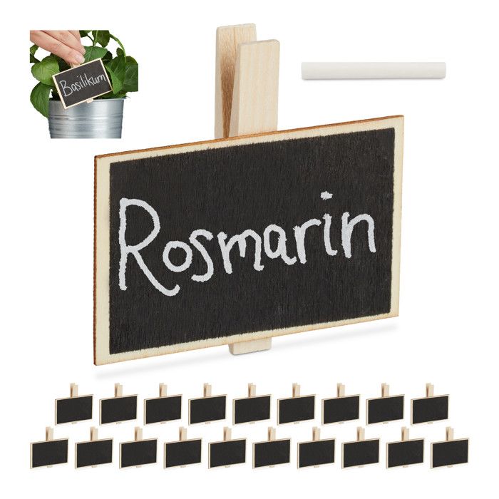 Il suffit de l'essuyer avec un chiffon humide et de réécrire. Les pinces à tableau sont réutilisables. Essuyez avec un chiffon humide pour réécrire Contenu : 40x Kräuterschilder2x KreideDekoartikel sind nicht im Lieferumfang enthalten Jolies étiquettes pour plantes pour épices et herbes Dimensions totales des pinces à tableau Dimensions totales (H x l x P) : environ 7 x 7,5 x 1,5 cm Pincettes pour Nail Art Pro en acier Anti acide, courbées droites en acier inoxydable, pinces à... Tableau Magnétique Vert 900x600mm Tableau à Craie Magnétique Petits tableaux en bois avec pinces Pour inscrire les noms lors de mariages, pinces pour identifier cadeaux ou pour afficher les prix Jeu complet comprenant 40 pièces; pinces pour lessive en tableau; avec 2 batons de craie blanches Panneaux en bois pour plantes aromatiques Le lot comprend 40 plaques à herbes étiquettes Jardin Herbes Aromatiques 40pcs Avec Des Pinces à Linge Durables Réutilisables De Clip De Photo Identifiants Pots Herbes Mariage Déco EN STOCK : Pincettes pour tableau, jeu de 40, pour identifier plantes, réutilisables, avec craies, en bois, nature/noir, 10036604_0_GB pas cher. Livraison rapide partout en France Dimensions de la plaque (H x l) : environ 5 x 7,5 cm Plus de 10 ans d'expérience Poids de chaque plaque : environ 10 g , Matériau : Bois , Couleur : Naturel/noir salon, jardin, loisirs Relaxdays est une entreprise de commerce électronique qui met l'accent sur les produits ménagers., Marque allemande , Normes européennes Les pinces avec tableau sont polyvalentes et font également bonne figure comme décoration de mariage ou comme étiquette de prix créative dans un magasin de fleurs. Plaques peuvent être réécrites - Simplement laver avec une serviette humide