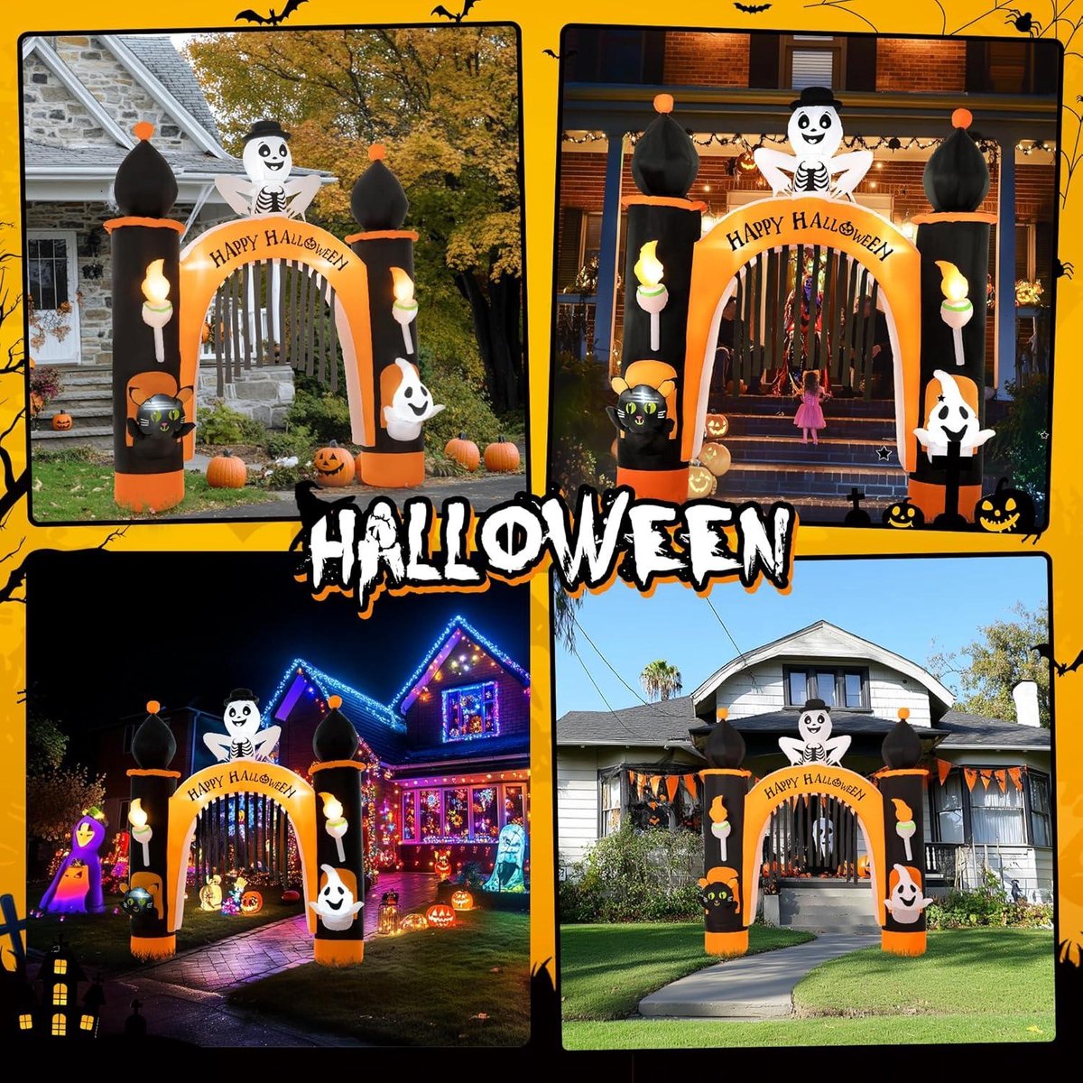 Arche gonflable SIAM - Arche gonflable - Airsystems France Creche De Noel Décoration D'Halloween Arche Maison Hantée Gonflable 240 Cm - Arche D' Halloween Motifs Fantômes Chats Squelettes En outre, il est livré avec les pics de sol, la corde et le sac à eau dont vous avez besoin pour l'installation. Il transformera votre jardin en un pays des merveilles effrayant. Facile à monter et à ranger : ce château gonflable d'Halloween est livré avec un ventilateur et lorsque vous le recevez, il suffit de connecter la fermeture éclair, de le brancher et il se gonfle en quelques minutes. À propos de cet article [Esprit gonflable géant] Avec cet esprit gonflable avec LED à effet flamme, créez une atmosphère d'Halloween vraiment effrayante. Parfait pour la terrasse, le jardin ou la cour. En cas de vent, l'esprit commence à vaciller, ce qui le rend encore plus vif et effrayant Lorsque Halloween est terminé, vous pouvez également l'aérer pour le ranger en toute sécurité, il ne prendra pas trop de place pour vous. Arco de Halloween impresionante: nuestro arco inflable gigante de Halloween contiene todos los elementos clásicos y populares de Halloween, como fantasmas, llamas, gatos negros y fantasmas esqueléticos Matériaux et détails : cette arche gonflable d'Halloween est fabriquée en tissu polyester imperméable 190T, ce qui garantit sa sécurité pour l'extérieur. Égayez vos décorations d'Halloween : l'arche gonflable d'Halloween dispose de 21 lumières LED blanches froides intégrées, parfaites pour les spectacles nocturnes.