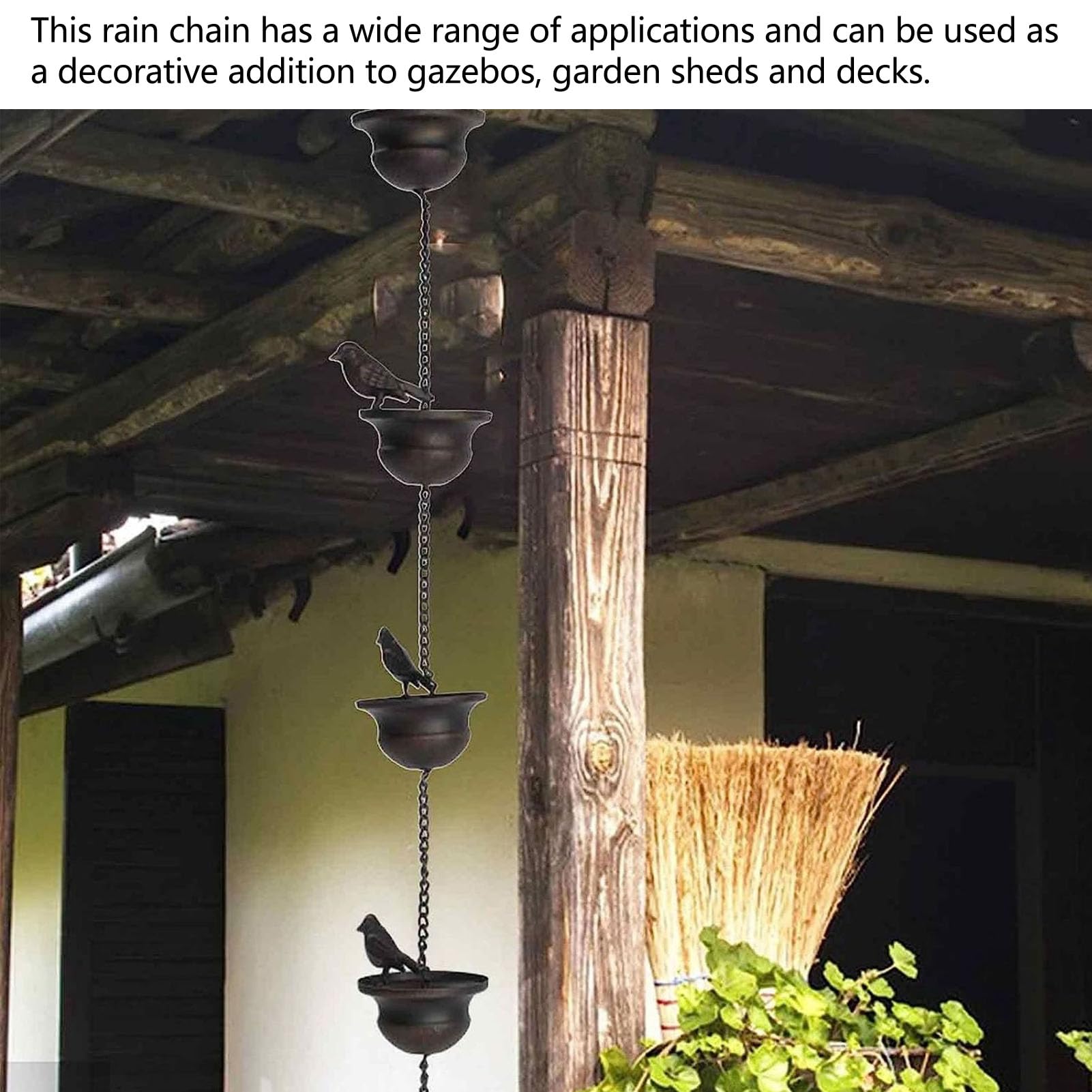 Chaînes de pluie en métal de 108 cm, chaîne décorative pour eau de pluie avec clochettes pour jardin, extérieur et cour, recueille et dirige efficacement l'eau de pluie Caractéristiques : Nom du produit : chaîne de pluie décorative., *Matériau : métal., * Taille : environ 108 cm., Couleur : voir photo. Chaîne De Pluie Métal 108 Cm Chaîne De Pluie En Métal 108 Cm Pour Gouttière, Carillon De Pluie à Suspendre, Décoration De Jardin, Attrape-pluie, Style Rétro | Leroy Merlin Décoration Jardin Gestion Eau De Pluie Caractéristiques : * Esthétique décorative : la chaîne de pluie dispose d'un design élégant avec des perles et des cloches qui créent un superbe effet de cascade lorsque l'eau coule vers le bas, améliorant l'attrait visuel de votre espace extérieur, même par temps sec. Matériau : fabriquée à partir de métal robuste, cette chaîne de pluie est conçue pour résister à diverses conditions météorologiques, stabilité sans éclaboussures ou s'envoler par mauvais temps. Option unique : cette chaîne de pluie est mémorable pour toutes les occasions, permettant à vos proches de profiter du son relaxant de l'eau qui tombe tout en améliorant leur décoration extérieure. Ursaajor Chaînes de pluie pour gouttières – Carillon en étal avec... Hztyyier Chaîne De Pluie Métal 108cm Pour Jardin - Décorative Et *Idée cadeau parfaite : cette chaîne de pluie est un cadeau attentionné pour une pendaison de crémaillère ou des occasions spéciales, permettant aux amis et à la famille de profiter des sons apaisants de la pluie tout en améliorant leur esthétique extérieure. Nombre de pièces : 1., Contenu de l'emballage : 1 chaîne de pluie décorative. *Pour la construction : fabriquée à partir de métal de haute qualité, cette chaîne de pluie est conçue pour résister aux éléments, pour garantir qu'elle reste bien en place sans éclaboussures ou s'envoler pendant les tempêtes.