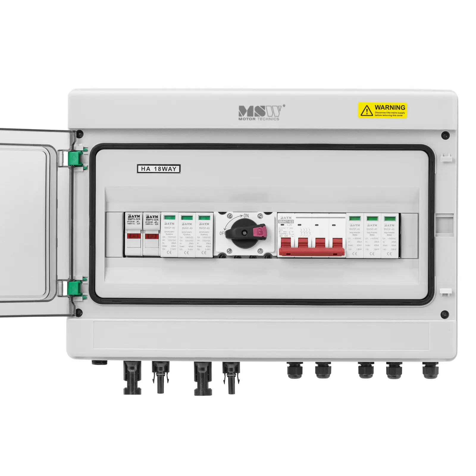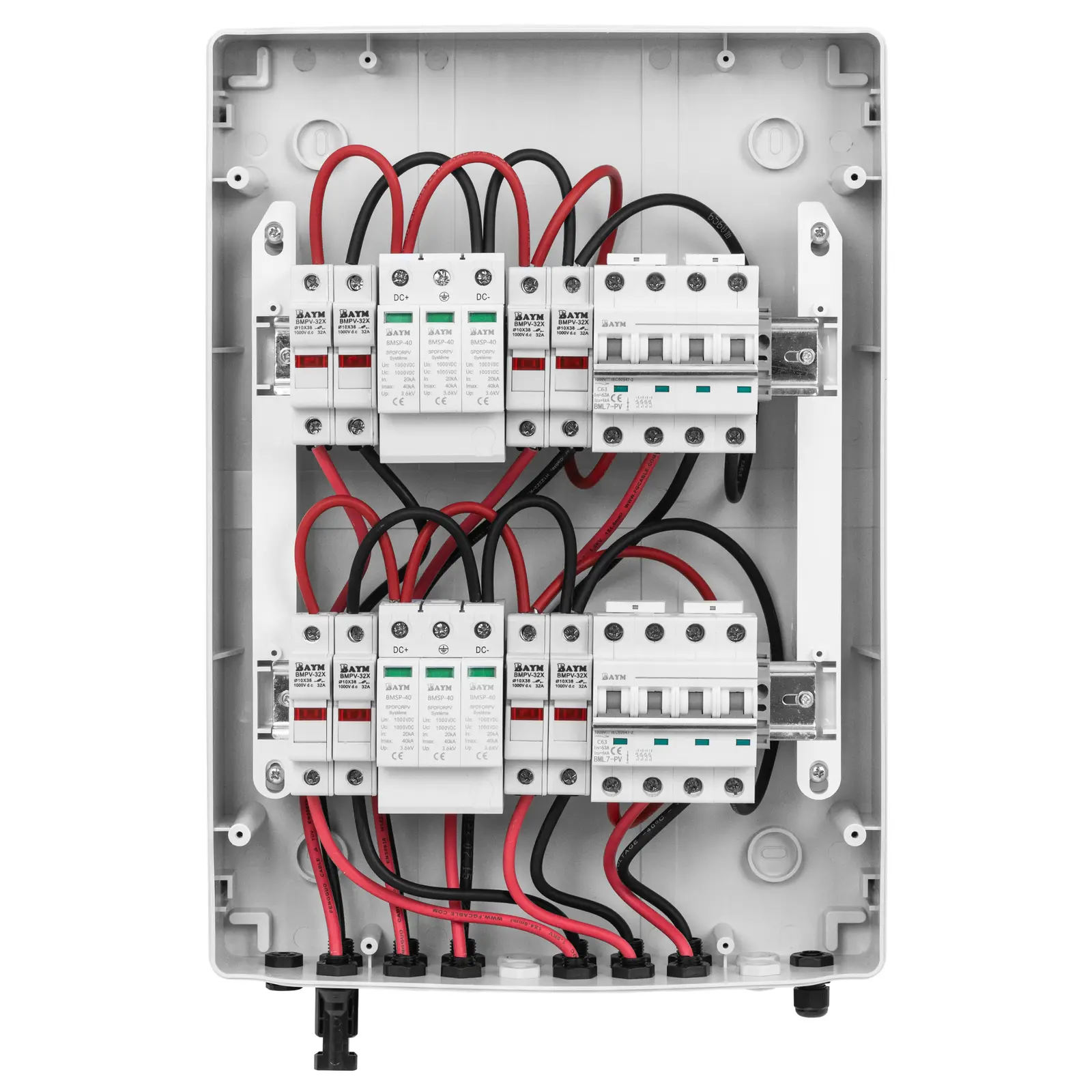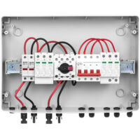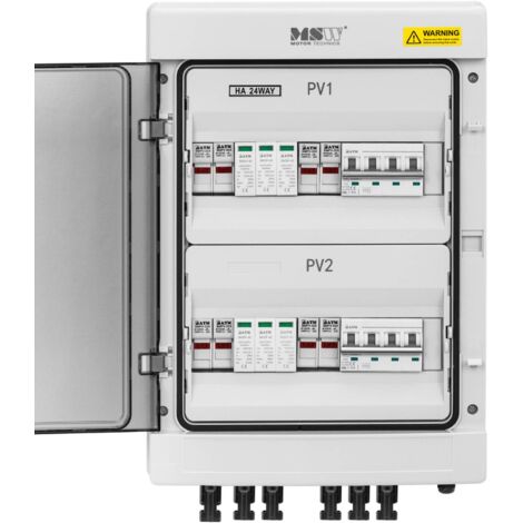 Coffret de protection DC 2 MPPT - 600 V | Mon Kit Solaire Grâce aux connexions de serrage et aux canaux de câble intégrés dans les côtés, vous pouvez utiliser la protection contre les surtensions pour installations PV rapidement et clairement. Parasurtenseur Type 2 PV MSW Dispositif De Protection Contre Les Surtensions Pour Systèmes Photovoltaïques De Type 2, 2 Entrées/sorties 1000 V IP65 Protection Contre La Foudre Boîtier Jonction PV 1000V Pour cela, la boîte de jonction solaire vous offre un total de 4 entrées séparées qui vous permettent de gérer et de sécuriser facilement 4 brins. Facile – Installation rapide du système PV de protection contre la foudre grâce aux raccords de serrage et aux canaux de câble intégrés Pratique : avec 4 entrées séparées, utilisez la protection contre les surtensions PV pour 4 brins Ce coffret de protection électrique DC a la capacité de couper l'installation entre les panneaux et de l'onduleur centralisé (2 entrées MPPT). Ceci est idéal... Coffret de protection AC photovoltaïque 9kW triphasé Le montage mural simple et la fenêtre transparente vous facilitent ensuite la vérification et l'entretien réguliers de la boîte de jonction PV. Sûr : la protection contre les surtensions pour installation PV (type 2) protège vos cellules solaires contre la foudre ou d'autres tensions élevées Il suffit d'allumer le boîtier de raccordement prêt à brancher entre le système solaire et l'onduleur.