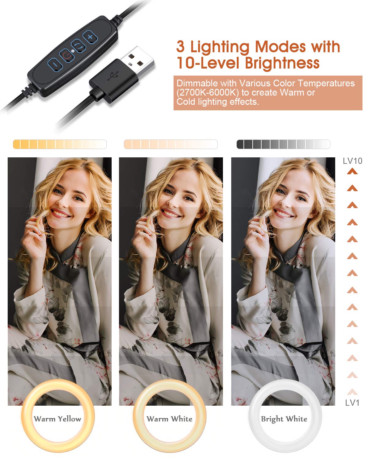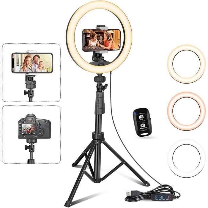 Les meilleures lampes annulaires en comparaison. Gagnants des tests, conseils d'achat et avis clients pour le meilleur éclairage. Parfait pour les tournages vidéo, le maquillage et la photographie Son abat-jour filtre la lumière plus uniformément, de sorte que vous pouvez obtenir un éclairage plus doux et plus naturel. Trépied Lampe Annulaire Réglable LED Lumière Anneau Avec Trépied, Lampe Annulaire Réglable Avec 3 Modes D'Eclairage Et 10 Niveaux Lampe Selfie Réglable RGB Il fournit un éclairage plus doux et plus uniforme tout en protégeant vos yeux. Compatible avec tous les téléphones de 8 cm de largeur (support webcam). La fermeture vous offre une grande commodité pour prendre des photos avec un groupe d'amis ou de familles, car vous pouvez prendre des photos sans courir sur votre téléphone à chaque fois ou laisser quelqu'un prendre pour le tirer. En outre, la télécommande Bluetooth permet de contrôler à distance l'enregistrement de photos et de vidéos.Nous avons mis à niveau le trépied et augmenté la hauteur réglable à 154 cm, ce qui convient aux personnes de différentes tailles Ring Light Telephone CES Lampe Annulaire Anneau Lumineux Led 8 Pouces 10 Niveaux De Right Light Cette grande lampe annulaire de 10 avec 120 perles de lampe est assez lumineuse pour le streaming en direct, le selfie, le maquillage, etc. Le trépied stable et antidérapant se stabilise bien sur votre bureau sans vaciller, et le joint universel permet à cet anneau LED de pivoter à 360° et son bouton le verrouillera dès que vous avez trouvé un angle parfait. Avec 3 réglages de température de couleur (blanc froid/blanc chaud/jaune chaud) et 10 niveaux de luminosité, la lampe annulaire selfie peut être adaptée à n'importe quel effet d'éclairage que vous souhaitez pour vos vidéos ou images.