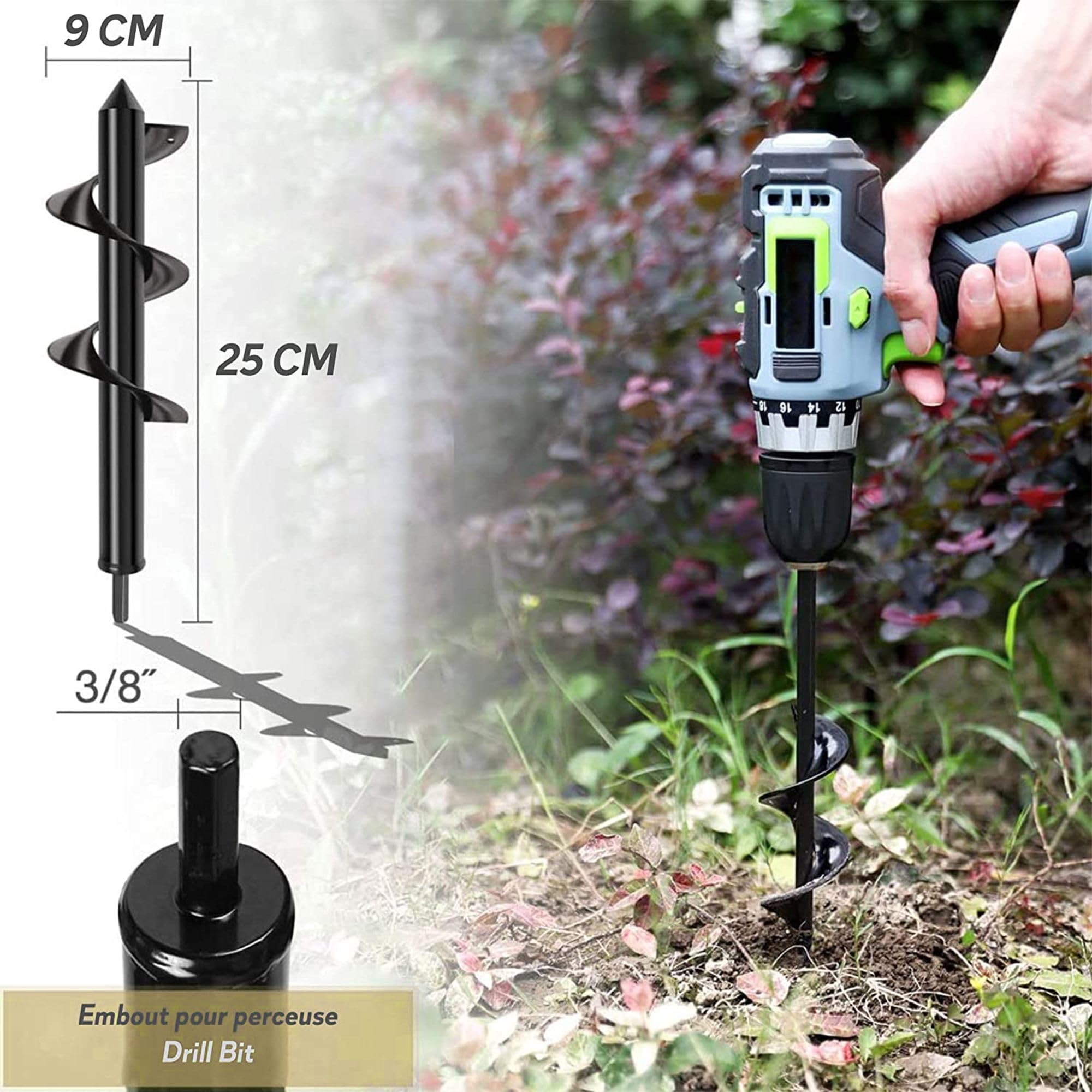 Foret de jardin - 4x22cm et 8x30cm - pour perceuse sans fil - avec Tariere Sds Aqbau® Tarière Pour Visseuse Sans Fil 450 Mm, Foret De Jardin Tarière Sol Diamètre 40mm Travail efficace : la construction spéciale en spirale permet une pénétration rapide dans le sol et facilite le retrait des matériaux de terre, idéal pour les forages répétés. Sa construction et ses paramètres techniques permettent de percer efficacement, ce qui fait ses preuves lors de la plantation de plantes bulbeuses telles que des tulipes ou des lys, lors de l'installation de piquets de jardin ou d'autres travaux de jardinage. Dimensions optimales pour le jardinage : avec un diamètre de 40 mm et une longueur de 450 mm, cette tarière est parfaite pour un perçage précis lors de la plantation ou de la pose de piquets. Dimensions optimales pour les travaux de jardinage : Avec un diamètre de 50 mm et une longueur de 450 mm, cette tarière pour visseuse sans fil est parfaite pour effectuer des forages précis lors de la plantation ou de la mise en place de piquets Construction robuste : fabriqué en acier de haute qualité et recouvert d'un revêtement en poudre protecteur, ce foret offre durabilité et résistance à la corrosion. La tarière Aqbau 40 x 450 mm est un outil polyvalent pour percer des trous dans le sol. Sa construction et ses paramètres techniques permettent de percer efficacement, ce qui fait ses preuves lors de la plantation de plantes bulbeuses telles que des tulipes ou des lys, lors de l'installation de piquets de jardin ou d'autres travaux de jardinage Embout hexagonal universel : l'embout hexagonal assure une connexion sûre à la plupart des perceuses et visseuses sans fil courantes, ce qui facilite la manipulation. Mode d'emploi Déficience