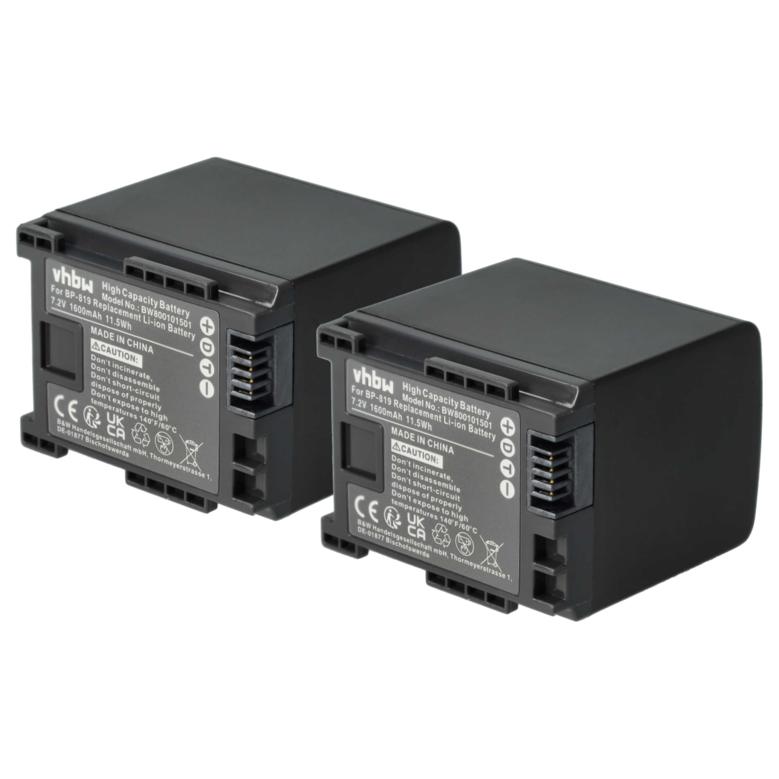 Batterie performante | Capacité : 1600 mAh | Tension : 7,2 Volt | Énergie : 11,52 Wh | Type : Lithium-ion Remplacement pour 2740B002, BP-819 batterie de votre caméra vidéo, caméscope Conforme aux normes légales | Finition de haute qualité | Utilisation durable Batterie de secours à puce pour appareil photo Canon Legria HF M52, HF M56, HF M Contenu de livraison : 1x batterie | Batteries et accessoires par vhbw Achetez vhbw 1x Batterie Compatible avec Canon Legria HF M300, HF G70, HF M306 caméra vidéo caméscope (1600mAh, 7,2V, Li-ION) avec Puce d'information Batterie Remplacement BP-819 Vhbw 3X Batterie Compatible Avec Canon Legria HF M306 HD, HF M306 Batterie 1600mAh 7.2V Canon Legria Mini X · - Otb / Chargeur. Neuf dès 9,98 €. vhbw 1x chargeur, 1x batterie compatible avec...