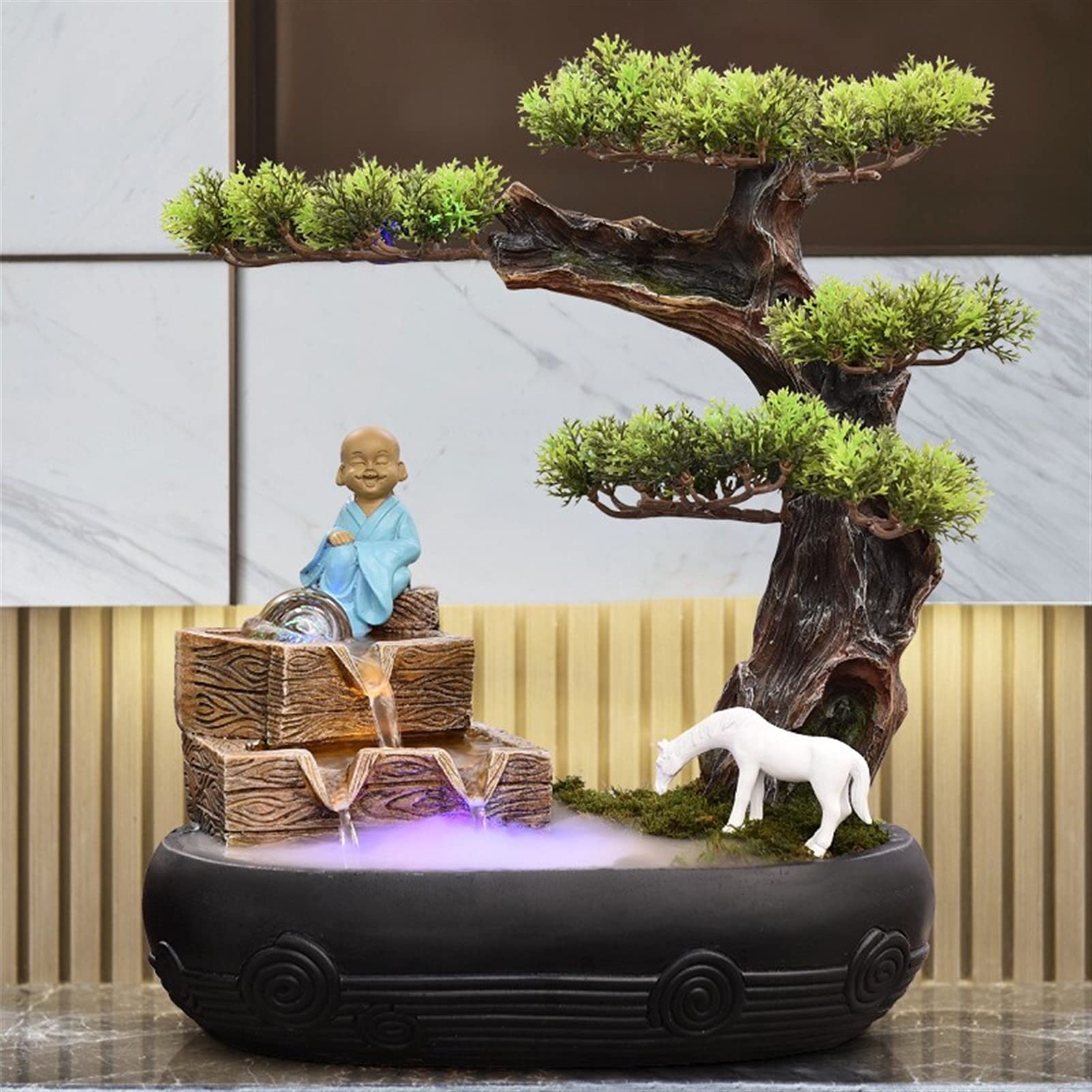 Écoutez le bruit des cascades d'eau qui frappent les étages inférieurs, vous pouvez vous endormir doucement ou soulager le stress. Écoutez le son d'une chute d'eau, il calmera votre humeur et soulagera votre stress après une longue journée de travail. Simulation de paysage, il y a des arbres, des rocailles et de l'eau courante qui coule à travers la fontaine, et les poissons rouges peuvent être nourris au sol. Décoration de bureau tendance. Description du produit Fontaine d'intérieur en résine cascade La fontaine d'eau de table moderne offre une relaxation et un calme apaisants. Écoutez le bruit d'une cascade, elle calmera votre humeur et réduira votre stress après une longue journée de travail. Caractéristiques : Matériau : résine. 🍀 Prenez la modélisation du paysage, il y a des arbres et des rocailles qui coulent dans la fontaine. Fiche : Prise UE 220 V. Vous pouvez cultiver des plantes succulentes à côté du jardin de rocaille et nourrir des poissons rouges dans la base ronde inférieure. Fontaine Zen Fontaine D'intu00e9rieur Avec U00e9clairage LED - Fontaine De Jardin En Rocaille - Cascade LED Chinoise Fengshui - Fontaine D'intu00e9rieur - Fontaine De Jardin - Fontaine Verte - Du00e9coration En Cascade Fontaine Artifice Fontaine D'intérieur Avec éclairage LED - Fontaine De Table Décorative · CNCEST Fontaine D'intérieur 220 V - Siulation De Jardin Rocaille - Huidificateur D 🍀 Le bel effet de pulvérisation rend la fontaine de table réaliste et unique, également un cadeau parfait. Fontaine à Encens cascade chinoise Backflow Les fontaines d'intérieur sont des décorations d'intérieur élégantes qui embelliront n'importe quelle pièce et surprenez vos invités., Simulation paysage. Facile à installer, pas besoin de conduits supplémentaires, il suffit de l'assembler et de le remplir avec de l'eau. Décoration élégante pour bureau, meuble TV, chambre à coucher, bureau, poids léger et facile à placer. Fontaine D‘Intérieur - Fontaine De Table Avec Pompe Et Eclairage Led Dimensions du produit : Env., 28 x 15 x 20 cm., Poids approximatif : 1600 g. Avec une finition exquise et une sculpture détaillée, cette fontaine de bureau s'adapte bien au style de décoration de n'importe quelle pièce. Plongez complètement la pompe et branchez-la à une prise de courant standard, profitez du bricolage et de la détente de la fontaine. Belle forme et taille parfaite, convient pour le salon, la chambre, le bureau, le café, etc.