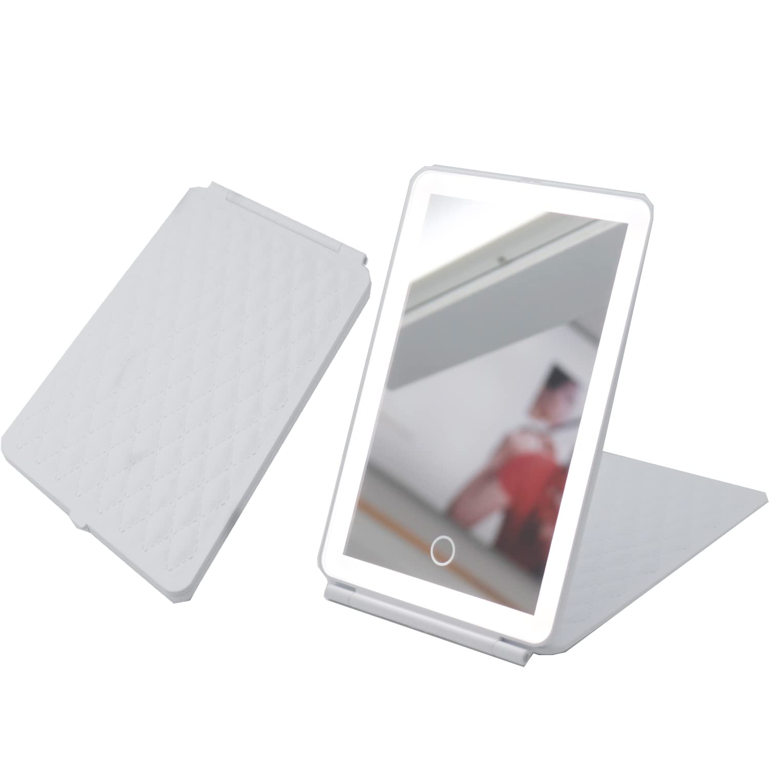 【Conception Pliante et Liste de Colis】 Le rétroviseur de voyage à LED est complètement replié, l'angle d'ouverture maximal est de 285 °. 1 miroir de maquillage éclairé, 1 câble micro-USB (Remarque: l'adaptateur secteur acceptable est de 5 V, l'adaptateur n'est pas inclus), 1 manuel d'utilisation. (Câble USB inclus uniquement, adaptateur secteur non inclus) Voyant de Charge: le voyant allumé en charge, le voyant éteint en pleine charge. Ce miroir de maquillage dispose de 64 LED qui fournissent une lumière froide, chaude et naturelle. Basculez facilement la température de couleur entre la... Voyant de charge, le voyant allumé en charge, le voyant éteint en pleine charge. Le miroir lumineux sans fil est plus pratique pour les voyages. La technologie de gradation continue rend ce miroir de maquillage éclairé plus intelligent. 3 Lumières de Couleur et Intensité Tactile] Le miroir de maquillage à LED de vanité Micacorn avec 3 lumières de couleur s'adapte à tous vos besoins de maquillage pour diverses scènes Miroir de Maquillage Grossissant à 3 Lumières de Couleur Ce miroir de maquillage avec 72 LED offre une lumière froide, une lumière chaude et une lumière naturelle. Appuyez longuement pour régler la luminosité. Le miroir est un interrupteur à capteur tactile intégré, appuyez longuement sur le bouton tactile pour atténuer sa luminosité, appuyez brièvement pour choisir la couleur de lumière dont vous avez besoin. Avec 72 perles de lumière LED super lumineuses intégrées (36 perles de lumière blanche, 36 perles de lumière jaune), vous pouvez clairement voir vos traits du visage, faire un maquillage parfait. 【Portable et Rechargeable par USB】La taille du miroir: 10 x 7,5 pouces (25,5 x 19 cm). Miroir de Maquillage Rechargeable Le miroir portable éclairé peut être chargé par le powerbank, le PC, etc. 72 Lumières LED Intégrées Miroir Maquillage Led Micacorn - Grossissement 1X/10X - 3 Lumières Appuyez brièvement sur l'interrupteur du capteur pour changer les couleurs de la lumière. Double Miroir Grossissant 3X/5X avec Lumière Batterie 2000mAh intégrée au miroir, rechargeable par USB (câble USB inclus), qui est plus facile à utiliser et n'a pas besoin de s'inquiéter de remplacer les piles pour endommager le miroir. 【Miroir de Maquillage à Lumière LED】Micacorn le miroir de maquillage LED est fabriqué en ABS et en verre de haute qualité, qui est plus haute définition et durable que les miroirs en plastique normaux. Miroir De Voyage Rechargeable Micacorn LEDs Miroir De Table, Grossissement 3X 5X Miroir De Maquillage Miroir Led Grossissant Conception de Grossissement 3x/5x Miroir grossissant de maquillage avec grossissement 3X et 5X, excellent choix pour dessiner du mascara ou des sourcils et des lentilles de contact cosmétiques. Basculez facilement la température de couleur entre une lueur chaude et une lueur blanche pour voir exactement à quoi ressemblera votre maquillage dans diverses situations d'éclairage comme le jour, le soir et les environnements de travail. 【3 Lumières de Couleur et Intensité Tactile】 Le miroir de maquillage à LED avec 3 lumières de couleur s'adapte à tous vos besoins de maquillage pour diverses scènes.