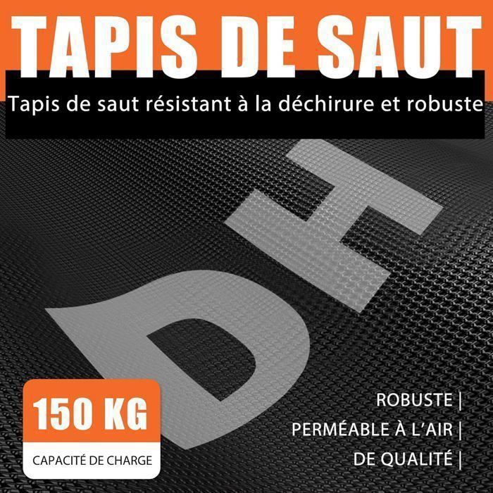 Avec une surface de saut de 97 cm de diamètre, notre trampoline vous offre beaucoup de liberté pour des exercices intenses et variés. Chez DH-FitLife, nous proposons une sélection d'équipements de fitness haut de gamme, spécialement pensés pour les passionnés de sport. Ils sont conçus et développés par des entraîneurs qualifiés en Allemagne Pourquoi le trampoline de fitness DH FitLife ? Le trampoline de fitness DH FitLife est un appareil d'entraînement à domicile conçu selon le concept « fiable, simple, silencieux ». Si vous avez des questions ou des problèmes, vous pouvez nous contacter à tout moment. Nous travaillons avec des équipes et des entraîneurs fiables et qualifiés et attachons une grande importance à la satisfaction de nos clients. Flexibilité et stabilité complètes : le trampoline de fitness dispose d'une poignée réglable en 3 niveaux de 122 à 138 cm. Vendeur allemand avec droit de retour de 30 jours : DH FitLife est une marque allemande avec distribution et service client à Hambourg. DH FtLfe Legestützgrffe Dp Barren Bars, Dpständer, Dp Staton... La suspension en caoutchouc assure une expérience silencieuse mais puissante pendant l'entraînement. Mini trampoline de fitness - Diamètre 114 cm - Pieds antidérapants - Usage intérieur/extérieur Rameur Pliable Appartement FirstE Trampoline De Fitness Pliable De 121,9 Cm, Trampoline D'exercice Trampoline Enfant Après utilisation, le trampoline se replie et se range sans prendre de place, les pieds et la poignée doivent être retirés. Le design pliable en 4 parties permet un rangement peu encombrant et un transport sans effort. Chiffon prêt à l'emploi : évitez un montage complexe de cordes en caoutchouc et protégez vos doigts avec notre produit ! Toutes les bandes élastiques de notre trampoline sont pré-montées. Après le déballage, le saut peut être déplié et utilisé en un tour de main (il est préférable d'aller à deux).