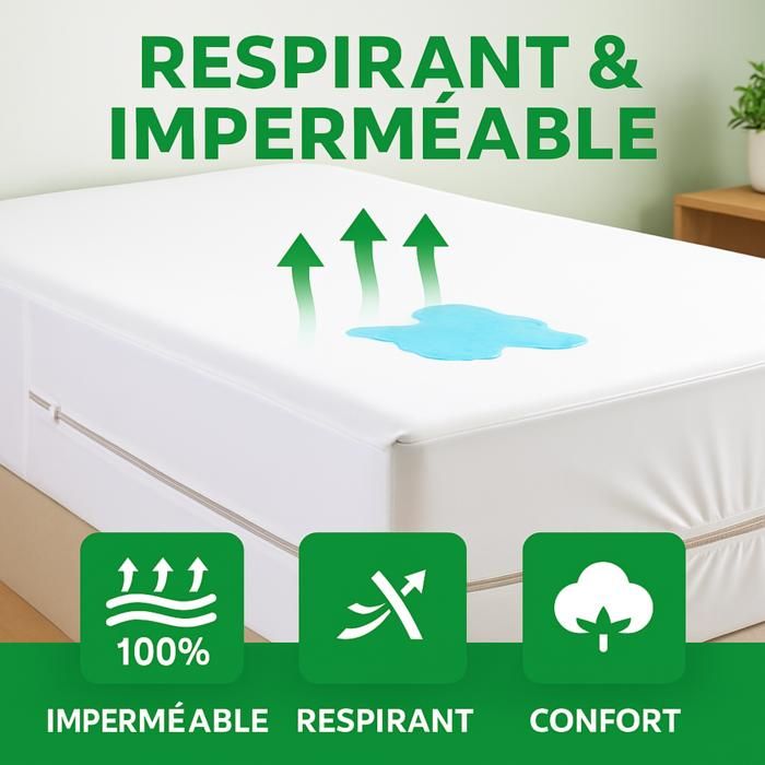 3- Faites glisser la housse vers le bas en exerçant une force égale des deux côtés simultanément. Caractéristiques principales : ✔Matériaux hypoallergéniques : Fabriqués à partir de tissus de haute qualité qui réduisent les symptômes d'allergie en bloquant les acariens et autres allergènes courants, ce qui en fait un produit idéal pour les personnes sensibles au sommeil. ✔Conception entièrement enveloppante : Offre une protection complète à votre matelas contre les punaises de lit, garantissant un environnement de sommeil plus sain. Ne pas utiliser d'adoucissant. ✔ Entretien facile et lavable en machine : La housse zippée est lavable en machine, pour un nettoyage facile. Protection Punaises De Lit Intégrale SLEEEP Housse Atelas 160x200 Anti Punaise De Lit Avec Fereture Éclair Enveloppe Matelas 25cm épais Cela risquerait de déchirer la bordure et d'ouvrir la fermeture éclair. Il suffit de la mettre en machine pour conserver une surface de couchage fraîche et hygiénique en un minimum d'effort. ✔Construction durable : Fabriqué à partir de matériaux robustes et durables qui offrent une protection fiable tout en préservant le confort, garantissant ainsi un matelas en parfait état au fil du temps. La membrane imperméable du protège-matelas sur le dessus repousse tous les liquides, y compris l'urine, les éclaboussures accidentelles, l'énurésie nocturne et les taches. Points forts : Dimensions : 160x200x25 cm; Type de fibre : Naturelle; Traitement de protection : Anti-punaises de lit; Lavable : Oui Protégez votre matelas avec notre protège-matelas zippé. Contenu de l'emballage : 1 protège-matelas Comment installer votre protège-matelas ? 1- Retirez toute la literie. ✔ Protège-matelas intégral : Protège votre matelas de la transpiration, de l'humidité, des taches et des éclaboussures. ✔Ajustement extra profond : Spécialement conçu pour les matelas jusqu'à 25cm d'épaisseur, il est doté d'une fermeture éclair sécurisée qui empêche tout mouvement et glissement. Housse matelas bébé anti punaise de lit - blanc - Kiabi - 22.00 Protège-matelas anti-punaise de lit houssable 160x200 cm pour matelas ép. 19 à 34 cm C'est comme enfiler des chaussettes.