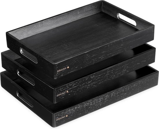 1 x plateau à thé rectangulaire en bois Couleur incluse., Noir Caractéristiques : 1., Matériau de haute qualité : woodeen serving tray est fabriqué en bois massif de haute qualité, recouvert de peinture alimentaire, non toxique et insipide, empêchant la prolifération des bactéries, anti-moisissure, résistant à l'humidité et à la chaleur, sans danger pour l'utilisateur !, 2., Double usage : Ce wooden serving tray peut contenir des aliments et des boissons chauds et froids en même temps, et répondre à vos besoins. Plateau Bois Rectangulaire 32 X 20 X 2cm, Plateau de Service Bois Antibactérien et Anti-Moisissure pour Thé, Boissons, Café, Snacks, Fruits, Maison, Cuisine, Salle de Bain, Restaurant et Bar (Noir afin de garder la table propre et bien rangée. Plateau en bambou est un plateau multifonctionnel avec un design noir moderne et élégant, ajoutant de nouvelles couleurs à votre maison confortable. plateau de service noir est idéal pour les événements extérieurs tels que les terrasses, les bords de piscine, les restaurants, les hôtels, les maisons et les cafés. Plateau Décoration Moderne 3x Plateau En Bambou - Plateaux Rectangulaires En Bois - Snacks Café Thé Pâtisserie Plateau Multifonction Cuisine Salon Le produit peut contenir des aliments et des boissons chauds et froids et est durable. FACILE À NETTOYER : plateau rectangulaire est facile à nettoyer, il suffit de le laver à l'eau ou de l'essuyer avec un chiffon humide. LARGE APPLICATION : plateau boi de service en boi peut être utilisé pour servir de l'eau, du thé, du café, du jus de fruit et d'autres boissons, ainsi que pour le petit-déjeuner, le déjeuner, le dîner, le dessert et tout autre repas. FAIT EN BOIS DE HAUTE QUALITÉ : Le Plateau Bois Rectangulaire est fait en bois massif de haute qualité, robuste et durable, il ne s'abîme pas facilement. Assiette À Thé, Plateau De Service, Plateau En Bois Candlenut Assiette Plateau de Service Bois Antibactérien et Anti-Moisissure a des bords arrondis, une surface lisse et sans bavures, il peut être utilisé pendant longtemps. Construit en bois massif naturel et écologique de première qualité, solide et durable. Assure une utilisation à vie si bien pris en charge. Plateau de service...
