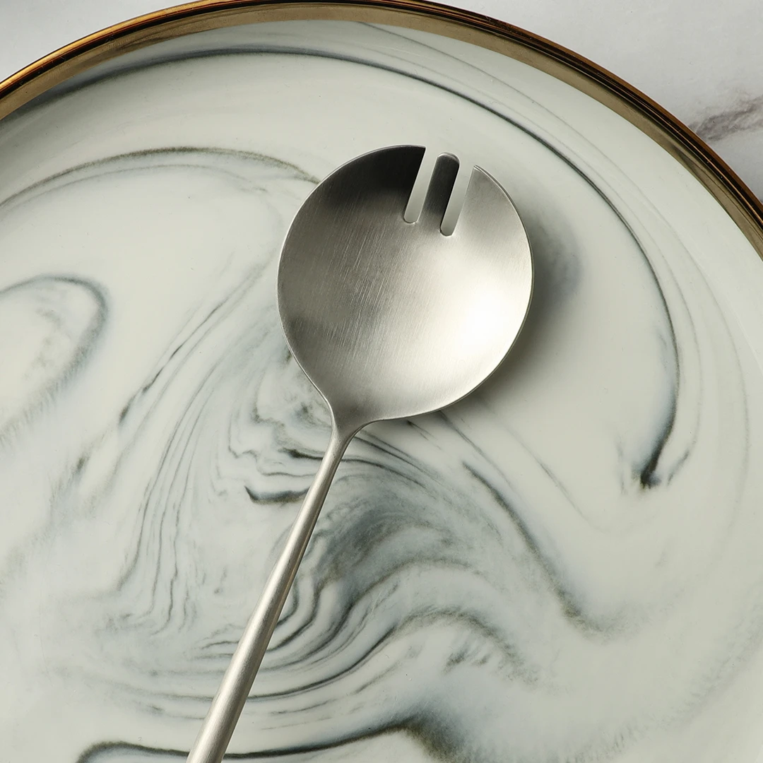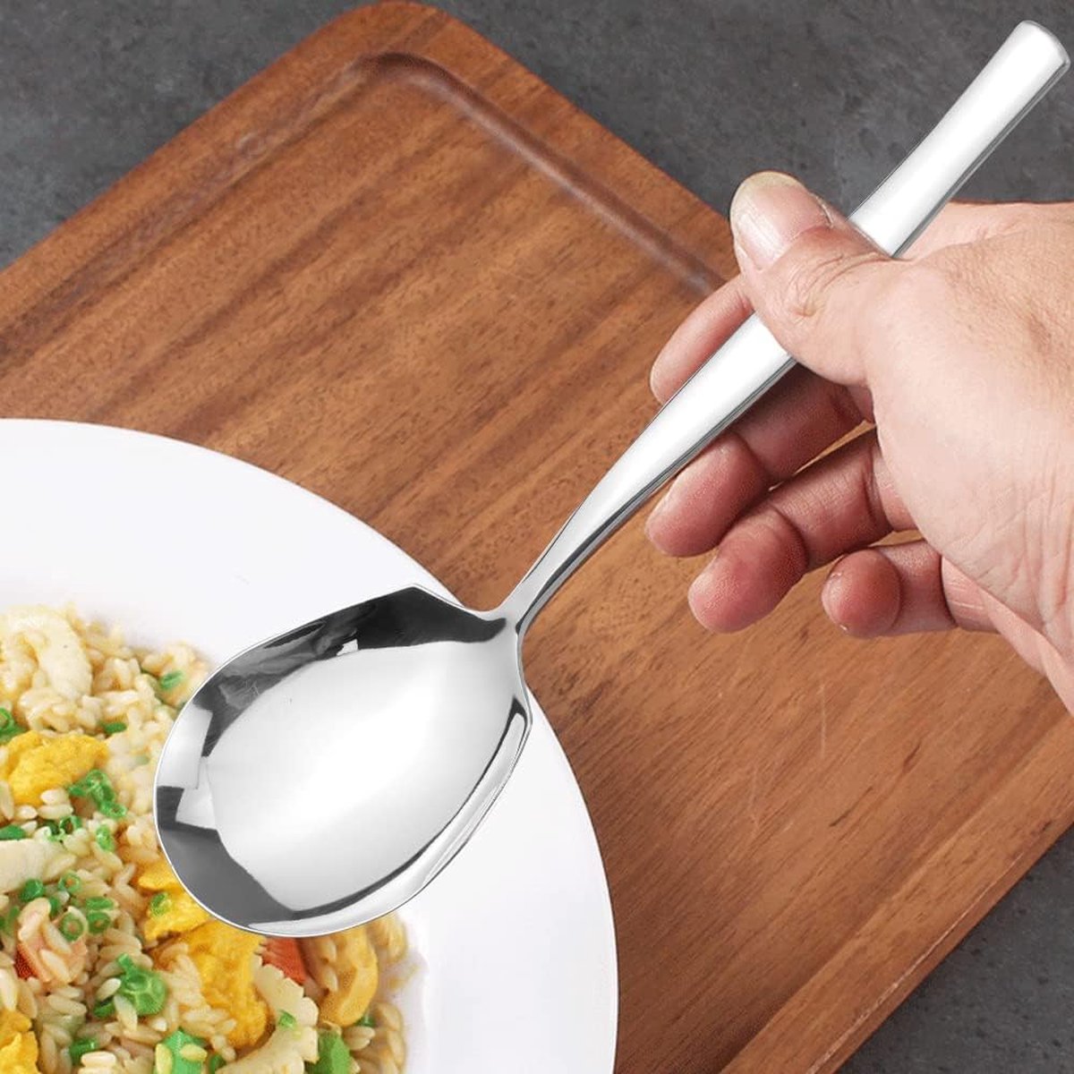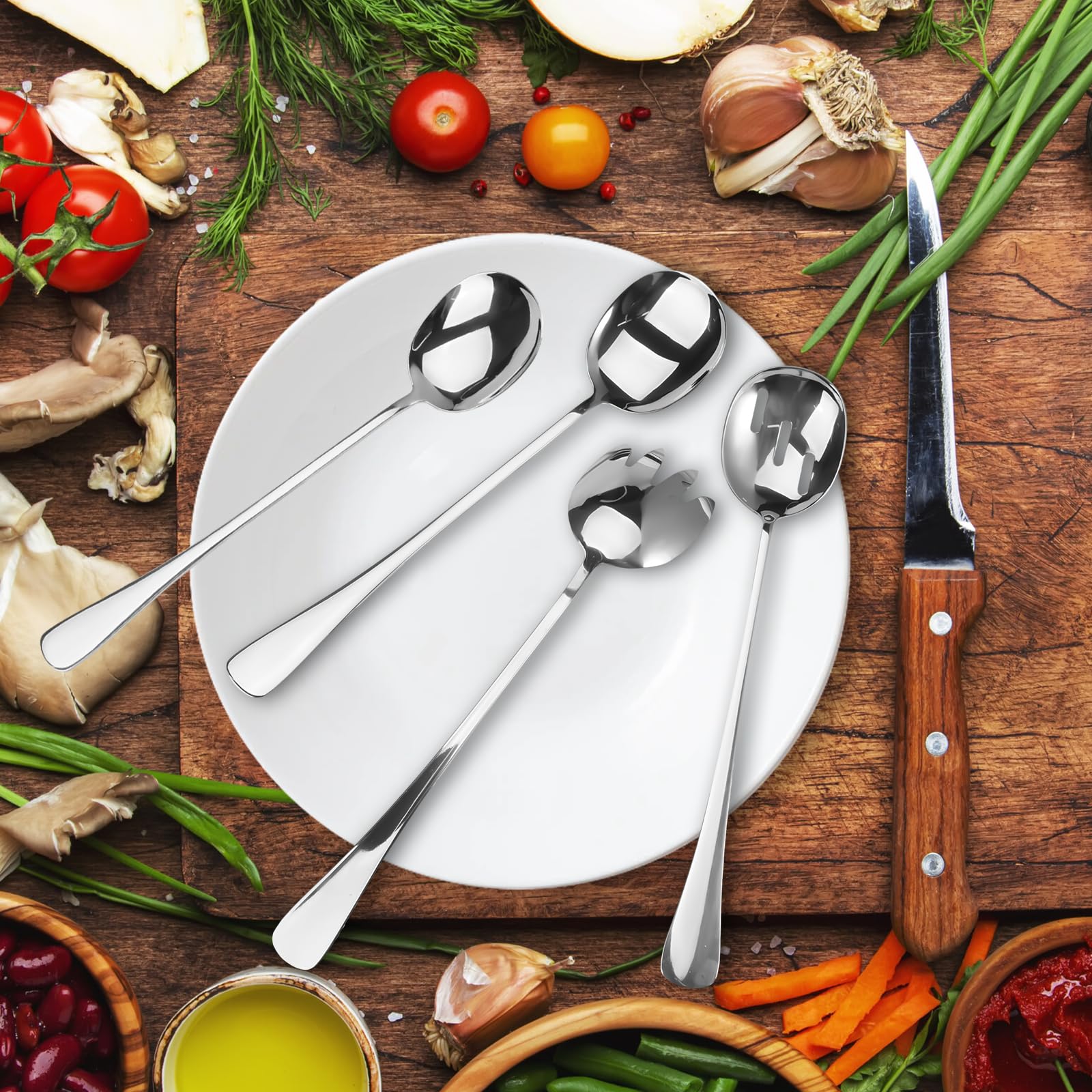 Propriétaires de restaurants : pour réduire les coûts liés aux casses grâce à des couverts en acier inoxydable résistants. Lot de 4 cuillères de service : dans ce joli ensemble de cuillères de service, vous recevrez 2 cuillères de service de 25,4 cm, 2 cuillères à fente de 25,4 cm Ensemble de 4 cuillères de service en acier inoxydable de grande taille – résistantes, lavables en machine, avec manche ergonomique, adaptées à un usage domestique et en restaurant. Remplacez les cuillères dépareillées par des cuillères de table uniformes pour garantir des portions identiques. L'emballage en vrac améliore l'efficacité, et le set de 4 pièces optimise le rangement dans la cuisine. Cette cuillère à salade est facile à entretenir, durable, lavable au lave-vaisselle et résistante à la rouille et aux taches. Elle peut être rincée à l'eau tiède ou essuyée, sans avoir recours à des détergents chimiques puissants. Construction robuste : fabriqué en acier inoxydable, cet ensemble d'ustensiles à salade est conçu pour résister à une utilisation fréquente tout en conservant son état impeccable, cuillères à mélanger, cuillères à salade Voir plus de détails Vous avez des questions à propos des informations du produit en français? Contactez-nous Cet ensemble de 4 cuillères de service en acier inoxydable est spécialement conçu pour offrir une efficacité professionnelle, alliant résistance, polyvalence et facilité d'utilisation. Muso wood Couverts à salade, 26 cm Cuillère et Fourchette Salade Bois Couverts De Service Ensemble De Couverts à Salade - Cuillère Et Fourchette De 25,4 Cm Pour Couverts Service Acier Inoxydable Le manche ergonomique assure une prise en main ferme pendant une utilisation prolongée, et la conception monobloc reste stable même lorsque vous servez des plats lourds tels que des ragoûts ou de grandes quantités de soupe. Adaptées à un usage domestique et en cuisine de restaurant, ces cuillères combinent la fonctionnalité d'une cuillère à trous et la précision d'une cuillère à soupe, pour répondre à toutes les tâches de service. Caractéristiques principales :Acier inoxydable de haute qualitéFabriquées en acier inoxydable, ces cuillères sont résistantes à la corrosion, aux rayures et à la décoloration. Utilisateurs cibles :Chefs et traiteurs : pour garantir des portions uniformes lors d'événements de grande envergure. Cuisiniers amateurs : pour simplifier la préparation et le service des repas grâce à des outils polyvalents.