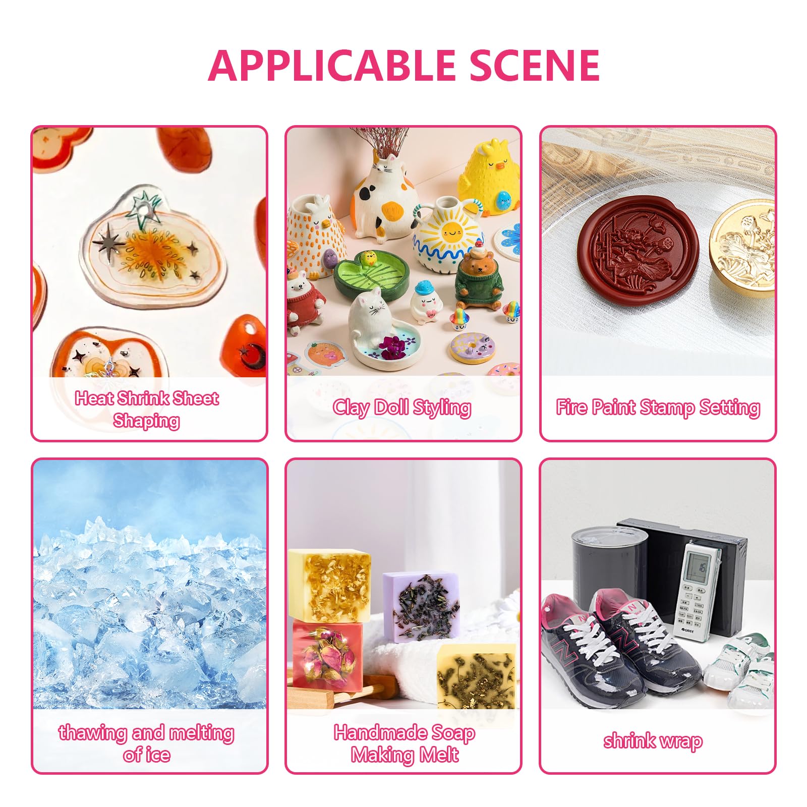 Soyez prudent lors de l'utilisation. Fangxuee Ne pas travailler plus de 10 minutes, souffler à un angle de 45 degrés pour éviter l'absorption de chaleur. Tension : 220 V CACouleur : comme indiquéMatériau : acier et plastiqueContenu du colis :1 * Tube thermorétractable et outil de chauffage de film thermorétractable pour poterie soupleSeul le paquet ci-dessus, les autres produits ne sont pas inclus. MGT04924-DECAPEUR,Pistolet à Air chaud, pistolet à Air chaud, outil Note: réflexion de lumière et différents écrans peuvent causer la couleur de l'article dans un peu différente de la vraie chose. 1. Peut être utilisé pour chauffer de la poudre de soulagement et des feuilles rétractables. 3. Une fois terminé, utilisez le thermique à haute température pour souffler quelques minutes. 5. La température ne peut pas être réglée, en théorie, peut atteindre 200 degrés en quelques secondes Prise UE 220V Pistolet À Air Chaud Portable 450W, Température + Débit D'Air Réglable Affichage Numérique Soudure Dessoudage Souffleur D'Air Chaud, Pour La Soudure Heat Ic Smd Bga, Gaine Rétractable Outil Chauffage Poudre Relief Feuille Thermorétractable MGT12765-DECAPEUR,Mini pistolet à Air chaud 2500W avec écran LCD...