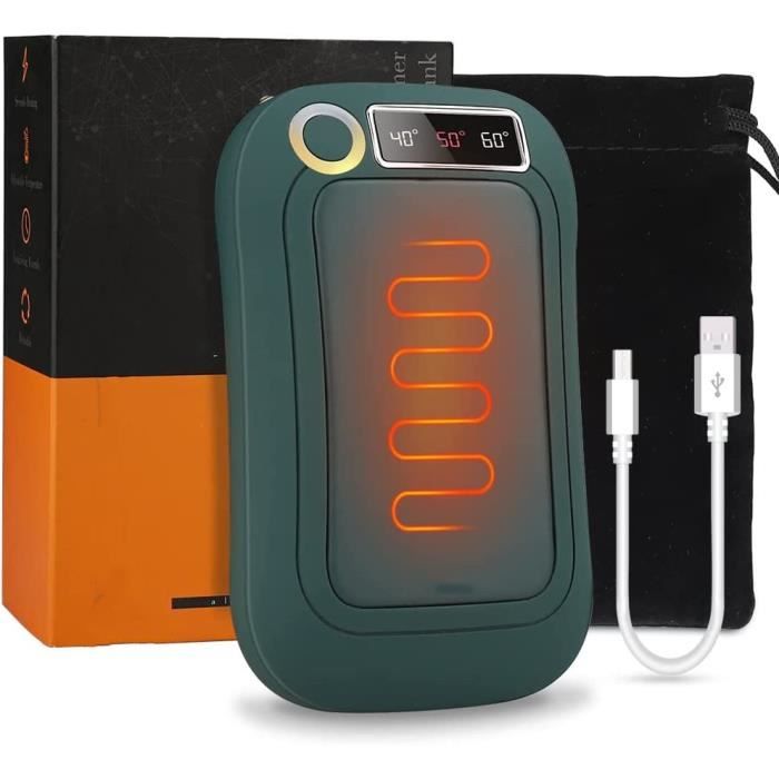 【chaufferette main reutilisable】Le chauffe main usb nouvellement mis à jour est conçu pour les téléphones Apple avec une sortie USB-C en plus de la sortie USB traditionnelle. 【2s de chaleur instantanée et 3 niveaux de chaleur】Contrairement aux chauffe-mains jetables, il s'agit d'un chauffe-mains rechargeable et réutilisable. Le chauffe-main rechargeable de 10 000mAh fournit jusqu'à 6-8 heures de chaleur dans le froid de l'hiver, et il peut également être utilisé comme banque d'énergie pour charger vos appareils électroniques à tout moment. Chaufferette Main Reutilisable 2 Pack,Chauffe Main 【Écran d'affichage numérique】Ce chauffe main rechargeable est doté d'un écran d'affichage numérique de la température, ce qui vous permet de connaître exactement la température actuelle et de la régler plus facilement à la température voulue., 【What You Get. Chaufferette Main Reutilisable 2 Pack,Chauffe Main Électriques,Chaufferette Main Rechargeable, 3 Réglages de Chaleur, Chargeur Portable USB 10000mAh,Chauffage 2S Rapide avec Lampe de Poche pour Chaufferette Eau Chaude Main Chaufferette Main Reutilisable 2 Pack,Chauffe Main Électriques Chauffe Mains Rechargeable Fournissant jusqu'à 8 heures de chaleur continue sur le réglage le plus bas, ce chauffe-mains USB dispose de trois niveaux de température réglables de 113°F à 140°F pour vous fournir une chaleur personnalisée 24 heures sur 24