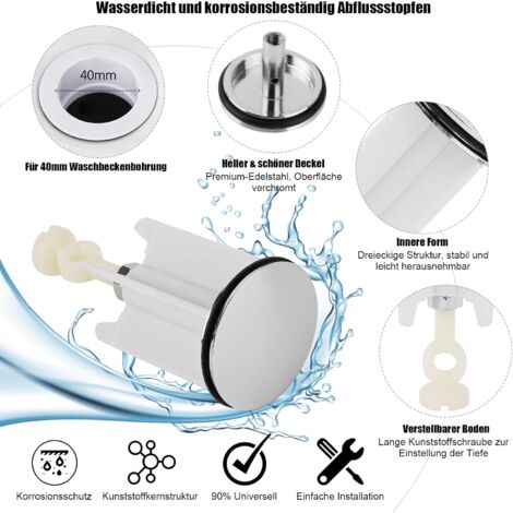 * Longueur ouverte ~ 58,3 mm Longueur fermée : 47,7 mm., Matériau : laiton., * Test : 100 000 fois. * Filetage supérieur (M8) ~ 7,6 mm. Boulon de bouchon pop-up : le ressort de boulon en laiton est conçu pour une installation et un retrait faciles, permettant un accès pratique aux déchets du lavabo Bouchon Pour Baignoire - 2Pcs Lavabo D Évier Universel Bonde Joint Caoutchouc - Bricolage Construction en laiton durable : fabriqué à partir de laiton massif avec placage épais, ce bouchon de vidange de baignoire offre une excellente résistance à l'érosion et une performance durable, testé à plus de 100 000 cycles pour une fiabilité garantie 3 pièces remplacement bouchon bain lavabo up - Canada Compatibilité générale : conçu pour s'adapter à la plupart des bondes de lavabo standard avec filetage supérieur de 7,6 mm (M8) et filetage inférieur de 15,5 mm, ce qui en fait un remplacement approprié pour diverses configurations d'évier Contenu : 1 bonde de lavabo de rechange A1112 avec tous les composants nécessaires pour une installation rapide et facile, offrant une solution immédiate pour vos besoins de plomberie de salle de bain ou de cuisine Bonde Lavabo Rechange A1112 Lot De 6 Bouchons De Vidange à Ressort En Laiton Pour évier Bouchon évier Mécanisme Ressort * Filetage inférieur () ~ 15,5 mm. * Clic Clic Clac pour vidage de lavabo. S'adapte à la plupart des bondes de lavabo standard.
