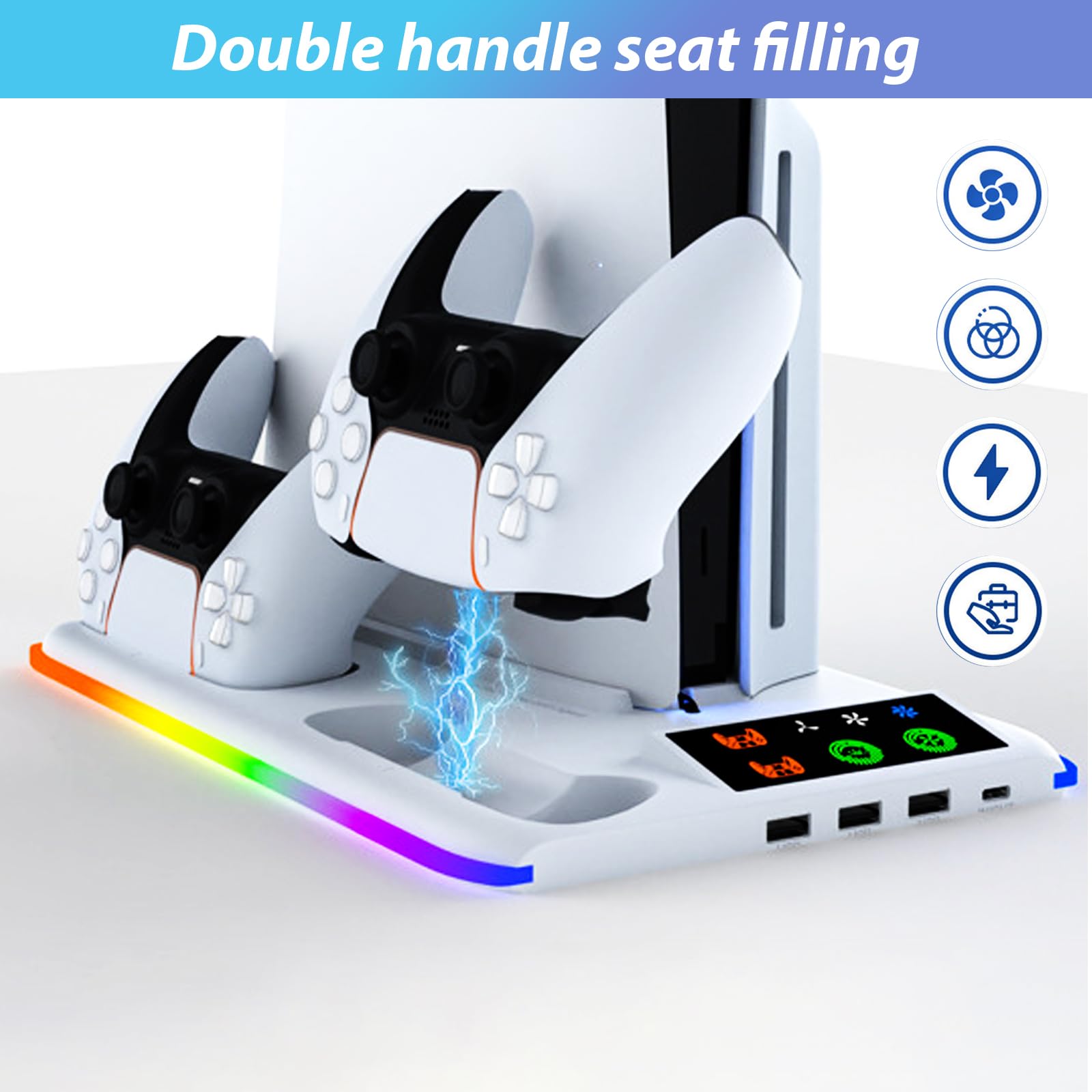 【10 types de lumière RVB】Ce produit est équipé d'un interrupteur tactile pour lumière RVB, qui peut contrôler le mode d'éclairage d'ambiance via un interrupteur tactile. Protégez votre PS5 avec le Bigben PS5 Slim Vertical USB Cooling Fan Charger Stand, qui combine charge et ventilation. Le modèle kiwi KiwiHome PS5 Cooling Station fait double emploi en rechargeant vos manettes tout en refroidissant votre console Spécialement conçu pour PS5 Pro/PS5 Slim : le support est compatible avec les versions disques et numériques des dernières PS5 Pro et PS5 Slim 2024 et PS5 Slim 2023 sont compatibles et sont des supports de refroidissement verticaux multifonctionnels conçus pour une expérience de jeu plus fluide. RVB à chaque fois, appuyez brièvement sur la lumière d'ambiance sur le bouton tactile, appuyez sur « rouge, vert, bleu, violet, bleu, jaune, six couleurs flash lent, flash six couleurs, flux, chevaux de course » 10 modes de rotation. Tout problème avec le produit, ou s'il y a quelque chose que vous ne comprenez pas, lors de l'utilisation, veuillez nous contacter et nous vous répondrons dans les plus brefs délais. Assurance qualité : les produits de notre entreprise sont soumis à un contrôle strict de la production à la livraison. En outre, c'est le meilleur cadeau pour de nombreux joueurs pour accueillir des accessoires de jeu PS5., Ventilateur de refroidissement réglable à 3 vitesses : le ventilateur de refroidissement PS5 dispose de deux ventilateurs intégrés à grande vitesse qui refroidissent rapidement la chaleur à l'intérieur de la console. Support de ventilateur de refroidissement pour PS5 Slim Disc/Digital Lorsque l'appareil est complètement chargé, le câble de charge correspondant se recharge automatiquement pour assurer la sécurité et la durée de vie de l'appareil. En outre, c'est le meilleur cadeau pour de nombreux joueurs pour accueillir des accessoires de jeu PS5., Spécialement conçu pour PS5 Pro/PS5 Slim : le support est compatible avec les versions disques et numériques des dernières PS5 Pro et PS5 Slim 2024 et PS5 Slim 2023 sont compatibles et sont des supports de refroidissement verticaux multifonctionnels conçus pour une expérience de jeu plus fluide. La puce intégrée dispose d'une fonction de protection de charge qui empêche les surtensions, les surintensités, la surchauffe et les courts-circuits, offrant une charge sûre. Compatibilité optimale : Ce support de refroidissement multifonction tout-en-un est spécialement conçu pour les consoles PS5, incluant les versions Disc et Digital de la PS5, PS5 Slim et PS5 Pro, garantissant une compatibilité parfaite avec toutes ces versions Hosonwell Ps5 Support Vertical PS5 Pro/Slim Avec Station De Charge Pour Manette Et Support Vertical PS5 Pro Slim La puissance du contrôleur peut être augmentée rapidement et efficacement.