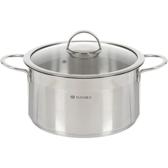 Le couvercle en verre avec soupape d'évacuation empêche une accumulation excessive de pression et protège contre le débordement. Marmite induction avec couvercle 24 cm pas cher - Convient à la plaque à induction, à la plaque électrique, à la plaque vitrocéramique, à la plaque à gaz et à la plaque radiale. Contenu de la livraison : 1x marmite à légumes 24cm avec couvercle (hauteur 19,5 cm, 8 L, fond ∅ 22,5 cm) FLAVORIA (art. Convient pour le lave-vaisselle n° 10177), Matériau : acier inoxydable 18/10, verre résistant à la chaleur, passe au four jusqu'à 220°C (avec couvercle jusqu'à 180°C). - Manipulation facile grâce aux poignées latérales, Couvercle en verre avec poignée en acier inoxydable, Versement sans débordement grâce au bord verseur, Économie d'énergie grâce à la base en forme de capsule pour une répartition optimale de la chaleur. Marmite traiteur induction avec couvercle 20 cm 4,4 litres inox Grâce à une répartition optimale de la chaleur et à des matériaux durables, les plats sont particulièrement tendres et riches en goût. Résiste au four : pot jusqu'à 220°C, couvercle jusqu'à 180°C, graduation pratique à l'intérieur. - Contenu: 1x Kela Marmite Traiteur, Flavoria, 10177, Matériau : acier inoxydable 18/10, Dimensions : H 19,5 cm, Ø 24 cm, Capacité : 8 l Marmite à Induction Lisse 28cm Cheffinger Faitout Induction Kela Marmite à Viande 24 Cm FLAVORIA, Marmite à Induction 5,5 L, Couvercle En Verre Avec Soupape D'échappement De La Vapeur, Graduation Intérieure, Grande Marmite, Sans Revêtement Marmite Tous Feux - De la série Flavoria : Casseroles, poêles et fondue avec garantie de 5 ans - Acier inoxydable 18/10, Facile à nettoyer : va au lave-vaisselle.