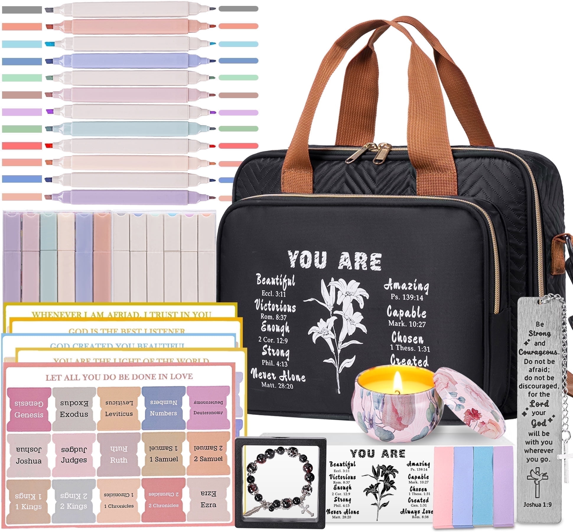 WEMATE Kit de journalisation biblique YI-Nouveau 75 pièces Signets bibliques espagnols floraux avec 6 surligneurs sans... Stylos Cartes Prière étui Bible Fournitures D'étude Biblique Kit De Journal Avec Onglets, Surligneur, Carnet Et Trousse à Stylos – Kit D'annotation, Ensemble D'accessoires Essentiels Pour Les Femmes, Les étudiants, Les Débutants Kit étude Bible Journaling Carnet Detude De La Bible Journal Detude Bibliques A Remplir