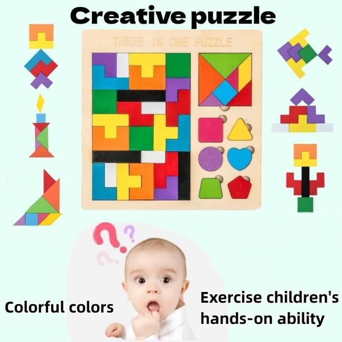 Contenu du jeu:- Volant avec constructions;- 40 pièces en bois;- Base en bois. Ces jouets éducatifs aident les enfants à acquérir des connaissances dans ces cinq domaines, en stimulant leurs compétences tout en jouant. 【 RECONNAISSANCE DES FORMES ET DES COULEURS POUR CRÉER DES FORMES CRÉATIVES】Avec ce casse-tête en bois, vous trouverez 6 types de pièces de formes et de couleurs différentes qui aideront votre enfant à développer ses capacités de reconnaissance et de logique. Avec ce kit de développement logique, les enfants peuvent stimuler la partie cognitive de leur cerveau en associant les 40 pièces de ce kit de puzzle en bois. Fabriqué dans l'UE: Notre principale préoccupation est la sécurité des enfants, c'est pourquoi les jouets Science4you sont conformes à toutes les réglementations et directives européennes relatives aux jouets. Double Tangram en Bois Œuf - Puzzle Écologique - Jeu 1 et 2 Joueurs ESTINK Puzzle Tangram Puzzle en bois géométrie Tangram avec livre Photo Êtes-vous prêt à découvrir toutes les façons possibles de compléter votre jeu? [JEU ORIGINAL EN BOIS, CADEAUX POUR FILLES ET GARÇONS] Ce jeu de puzzle en bois est un cadeau de Noël ou d'anniversaire original pour les enfants de plus de 3 ans. De plus, les enfants pourront développer leur créativité en assemblant les différentes pièces pour créer de belles figures originales. 【 JEU DE L'ESPRIT ENFANTS DÉVELOPPER VOS COMPÉTENCES 】Le développement de jeux pour stimuler l'esprit humain est utilisé depuis des générations. Casse-tête Bois Formes Géométriques Science4you 40 Pièces De Puzzle En Bois, Puzzle 3 Ans – Casse Tangram Montessori Tangram Maternelle - Puzzle en bois : Jouet Montessori - Tangram Avertissement De Sûreté Il n'est pas recommandé aux enfants de moins de 4 ans. Êtes-vous prêt à découvrir toutes les façons possibles de compléter votre jeu?Jouet éducatif pour les enfants de 3, 4, 5 et 6 ans: inspiré de la méthodologie STEAM (anciennement connue sous le nom de jouets STEM). 【 CASSE-TÊTE EN BOIS POUR ENFANTS DE 3, 4, 5 ET 6 ANS 】Dans ce jeu en bois, tu trouveras 40 formes en bois pour jouer à ton jeu vintage. Ce jeu d'esprit pour enfants développe vos compétences: Le développement de jeux pour stimuler l'esprit humain est utilisé depuis des générations. Jouet STEM: Science4you vise à développer des jouets éducatifs qui allient plaisir et éducation en stimulant la curiosité et l'expérimentation. [JOUET ÉDUCATIF MONTESSORI POUR LES ENFANTS DE 3, 4, 5 ET 6 ANS] Inspiré par la méthodologie STEAM (anciennement connue sous le nom de jouets STEM).